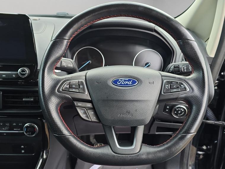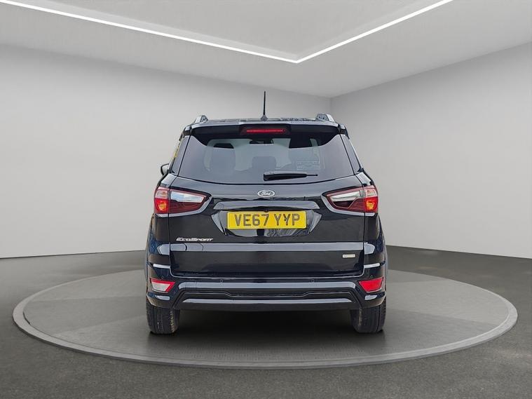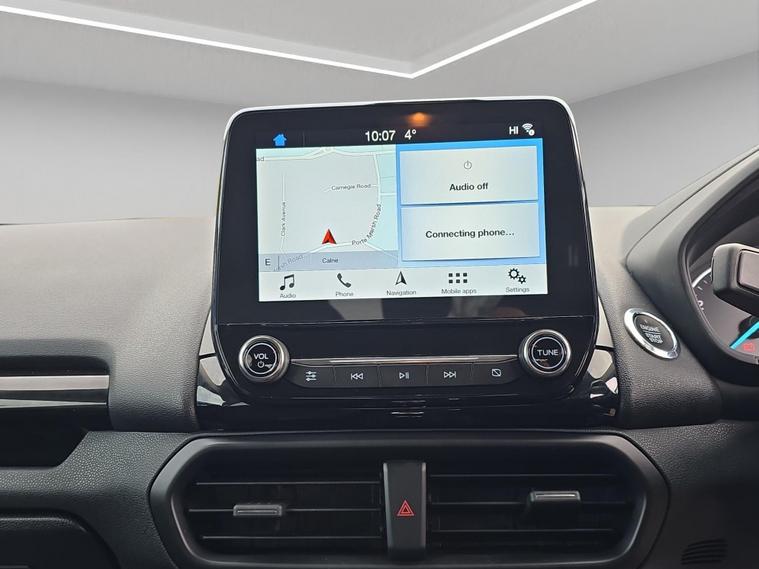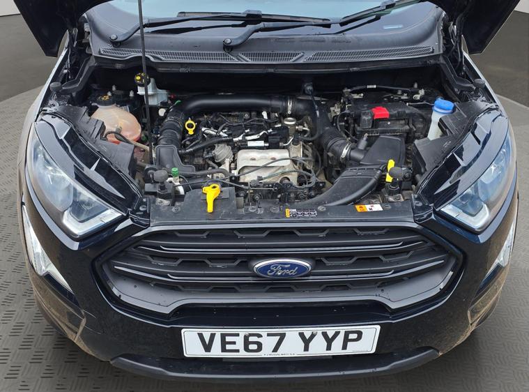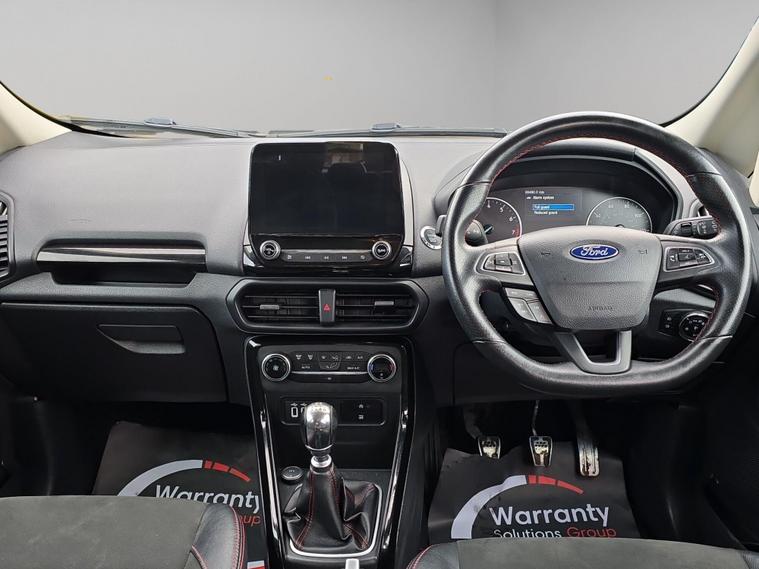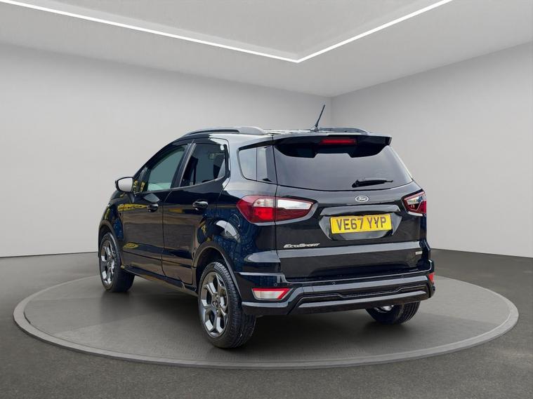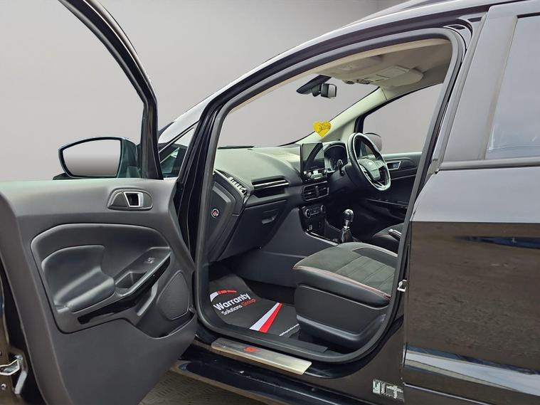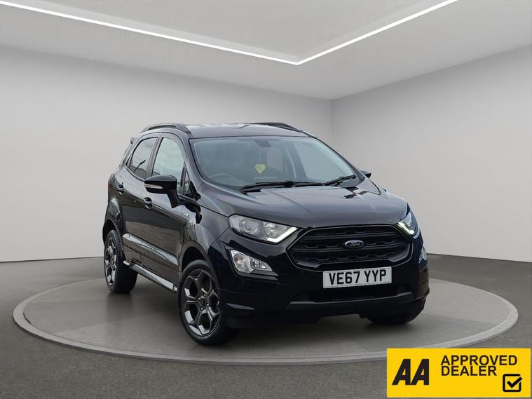 Discover this 2018 Ford EcoSport T ST-Line, a stylish and practical compact SUV. This Euro 6 compliant model boasts a responsive 1.0L petrol engine with a partial service history, offering an impressive fuel economy of up to 53 miles per gallon. It comes equipped with Ford Keyless Entry and Keyless Start for effortless access and ignition, alongside a Rear View Camera and Rear Parking Sensors to assist you with parking. Inside, you'll appreciate the Electronic Automatic Temperature Control for a comfortable cabin environment, and the Ford DAB Navigation System featuring Ford SYNC3, which includes Android Auto and Apple CarPlay for seamless smartphone integration and Bluetooth connectivity. The front seats are fitted with 2 Way Head Restraints for added comfort.This Ford EcoSport ST-Line is designed to offer a superior driving experience compared to other vehicles in its class. Its low CO2 emissions contribute to a more environmentally conscious drive. The combination of its efficient 1.0L petrol engine, advanced navigation system, and convenient parking aids makes it an excellent choice for those seeking a well equipped and economical vehicle for everyday use. It also comes with 6 months of warranty, 12 months of AA breakdown cover, finance options with hawkstone motors finance, 5 days of free AA insurance, a Fresh MOT and we also offer national delivery with extra costs and we service all our cars..