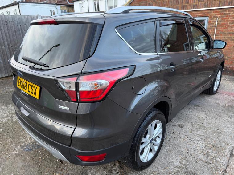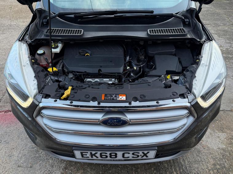 This 2018 Ford Kuga T Titanium boasts an MOT valid until February 2027 great service history and a clear vehicle history check and 6 months comprehensive warranty offering you peace of mind. This Four Wheel Drive model is powered by a 1.5 litre petrol engine and meets Euro 6 emissions standards. It comes equipped with a Premium Ford DAB Navigation System featuring Ford SYNC3, which includes Android Auto, Apple CarPlay, Bluetooth, a branded sound system, and rear parking assistance. Comfort is enhanced by DEATC Dual-Zone Electronic Automatic Temperature Control, and convenience is provided by the Ford Key Free System for keyless entry and start, alongside rear parking sensors.The Titanium trim level ensures a well appointed driving experience, with features designed to make every journey more enjoyable. The inclusion of a rear camera and parking sensors simplifies manoeuvring, while the advanced navigation system keeps you on track. The keyless entry and start system adds a touch of modern convenience. This Ford Kuga offers a compelling package of technology and practicality, making it a strong choice for those seeking a capable and feature rich SUV..