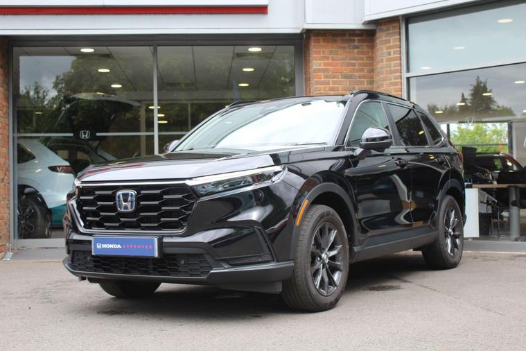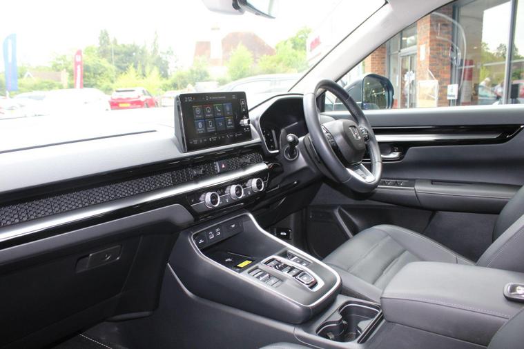 This 2024 Honda CR-V h i-MMD Elegance is a Honda manufacturer approved vehicle, offering peace of mind with its proven quality. Powered by an efficient 2.0L Petrol Hybrid engine and featuring a capable Four Wheel Drive system, this Euro 6 compliant model combines performance with economy. You'll appreciate the convenience of Wireless Charging for your devices, while the Rear View Camera with parking assistance makes manoeuvring simple. Bright LED Headlights ensure excellent visibility, and Adaptive Cruise Control helps to make longer journeys more relaxed.The spacious boot offers ample room for all your luggage, shopping, or equipment, making this CR-V a practical choice for families and adventurers alike. The inclusion of features like Adaptive Cruise Control and LED Headlights demonstrates a commitment to advanced technology and driver comfort, setting it apart from other vehicles in its class. This Elegance trim level provides a well equipped and refined driving experience..