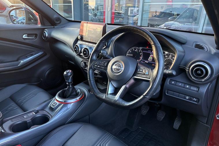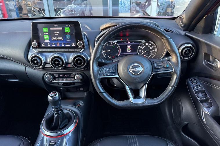 With an incredibly low mileage of just 8064 miles, this 2023 Nissan Juke DIG-T Tekna represents exceptional value. This one owner vehicle boasts a full dealership service history, with its last service completed on 10 November 2025 at 7406 miles. As a Nissan manufacturer approved vehicle, it comes with the reassurance of quality and reliability. The Tekna trim is powered by an efficient 1.0L Euro 6 petrol engine, and its MOT is valid until November 2026. Convenience is key with Intelligent Key and Start Push Button, offering walk away lock and approach unlock functions, alongside keyless entry.This Juke DIG-T Tekna also enhances your driving experience with seamless integration of your smartphone, featuring Apple CarPlay and Google Android Auto. The fuel economy is a notable highlight, achieving an impressive 48 miles per gallon, which indicates it is more economical than many similar vehicles. Furthermore, its low CO2 emissions are another positive aspect, suggesting it is a more environmentally friendly choice compared to other cars in its class..