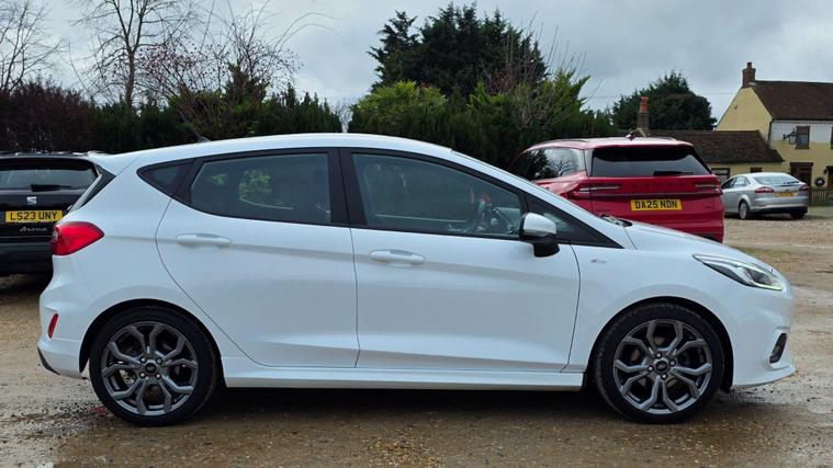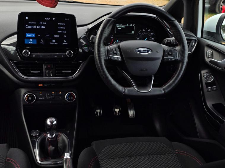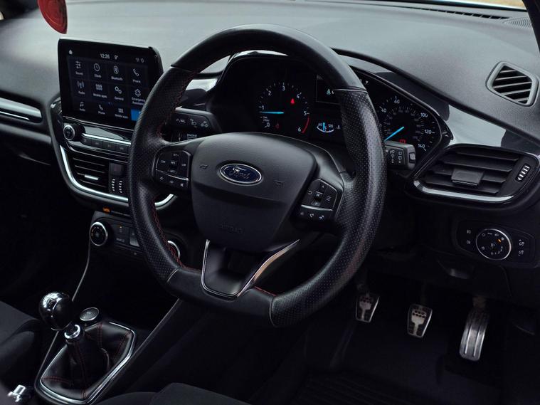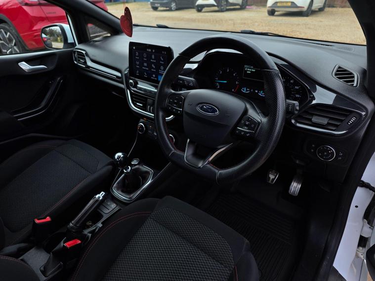 This 2019 Ford Fiesta TDCi ST-Line offers excellent value with its MOT valid until December 2026 and a clear vehicle history check. This popular hatchback is equipped with a 1.5L Diesel Engine and meets Euro 6 emission standards. Inside, you'll find the Ford SYNC system featuring a touchscreen, DAB radio, and seamless integration with Apple CarPlay and Android Auto, alongside Bluetooth connectivity. The ST-Line trim also includes Halogen Projector Headlights with LED Daytime Running Lights and automatic headlights for enhanced visibility. For your comfort, it comes with manual air conditioning.The Ford Fiesta TDCi ST-Line stands out with its low CO2 emissions, making it an environmentally conscious choice. Furthermore, its placement in a low insurance group means more affordable running costs, indicating it is a more economical option compared to similar vehicles. This particular model benefits from partial service history, providing a record of its maintenance..