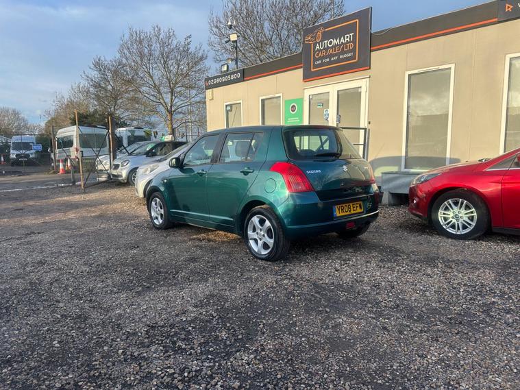 ******** SAME DAY FINANCE AVAILABLE ******** COMES WITH 03 MONTHS FREE WARRANTY ********* **********PERFECT EXAMPLE OF EXCELLENT CAR********* Another Perfect example of 2008 Suzuki Swift 1.5 GLX SZ2 16V SE Special Edition Euro 5 5 dr Hatchback 5 Seats 95 bhp with Metallic Green Colour and Full Grey Velour Interior which has just covered 56000 miles (warranted) . M A N U A L , 56000 Miles , 2008 SUZUKI SWIFT 1.5 GLX SZ2 16V SE Special Edition Euro 5 5dr Hatchback 95 bhp , 5 Seats , 08 Reg , Metallic Green Colour , Excellent Condition , Full Grey Velour Interior , Power Steering , Remote Central Locking , Adjustable Steering Column / Wheel , Front and Rear Head Restraints , Immobiliser , Front and Rear Fog Lights , Traction Control , Iso-fix child seat , A I R C O N D I T I O N I N G / Climate Control , Anchor Points , A B S , Body colour Bumpers , Multiple Air - bags , Electric Mirrors , Radio / CD Player , Alloy Wheels , Just been Fully Valeted , Full Service History + Old m.o.ts to Prove Mileage , 4 Good Tyres , M.O.T Till JANUARY 2026 , Ideal First / Family Car , Very Clean in and out , Cheap to Run and insure , Cheap to Tax , Price for Quick sale ..