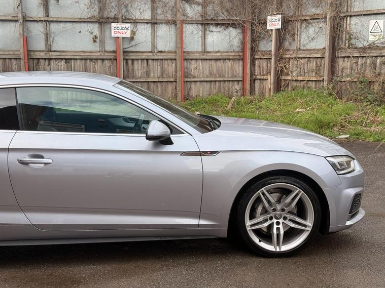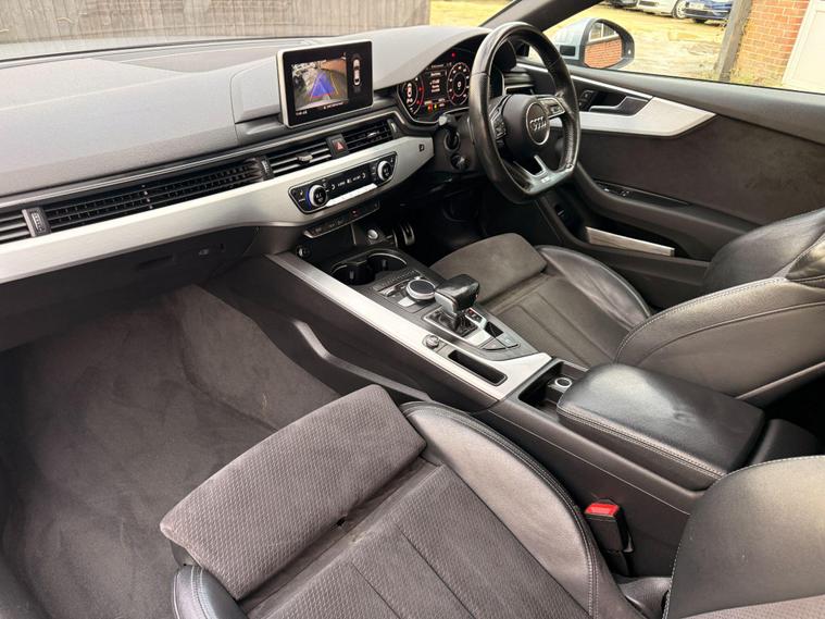 This 2017 Audi A5 TDI S line offers an exceptional blend of style and efficiency, boasting a remarkable 67 mpg fuel economy. This particular model is a Euro 6 compliant 2.0L diesel, presented in the sought after S line trim. It comes equipped with desirable features such as 19 inch multi spoke alloy wheels in a contrasting grey with a partly polished finish, and the advanced Parking Assistance Pack which includes a 360 degree camera along with front and rear parking sensors for effortless manoeuvring. Inside, you will find the impressive Audi Virtual Cockpit, a garage door opener integrated with Homelink, and a flat bottomed 3 spoke leather trimmed multi function steering wheel for a sporty feel.Beyond its impressive specification, this Audi A5 stands out with its large boot space, offering practicality for all your needs. The low CO2 emissions further highlight its efficiency, making it a more environmentally conscious choice compared to many vehicles in its class. This combination of excellent fuel economy, generous storage, and reduced emissions makes this A5 TDI S line a compelling option for those seeking a premium, capable, and economical car..