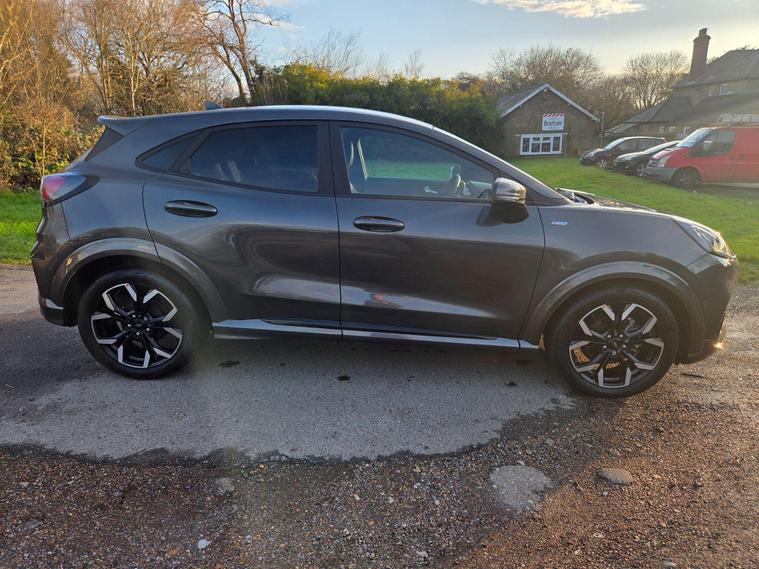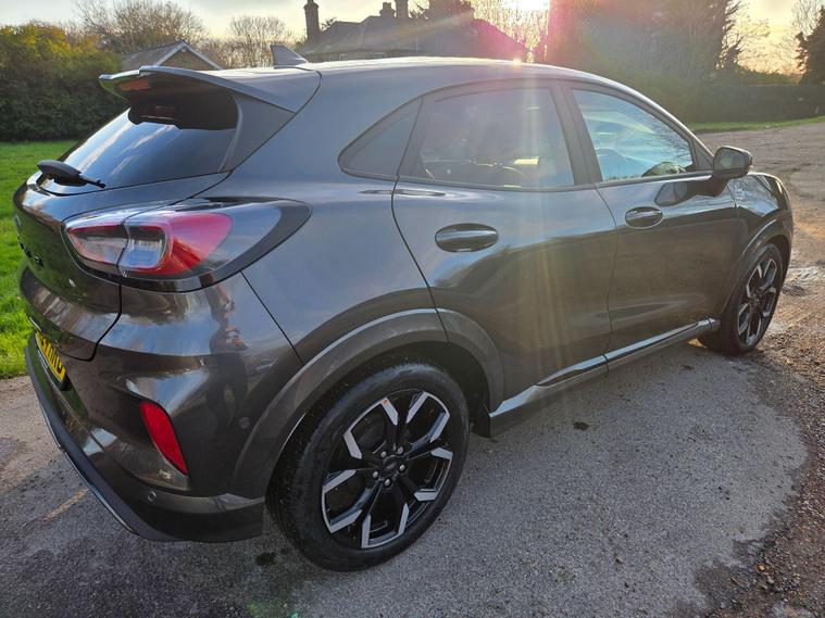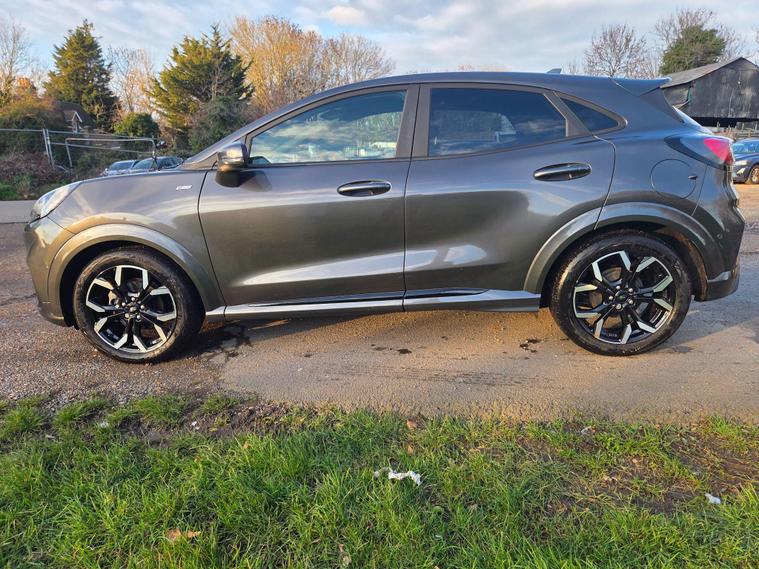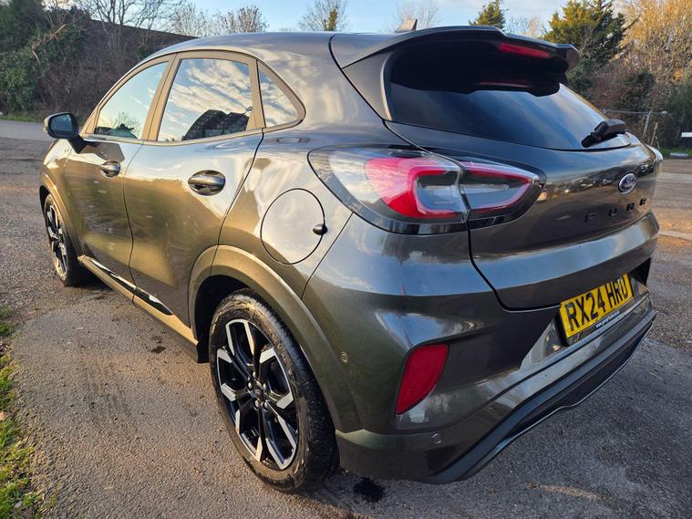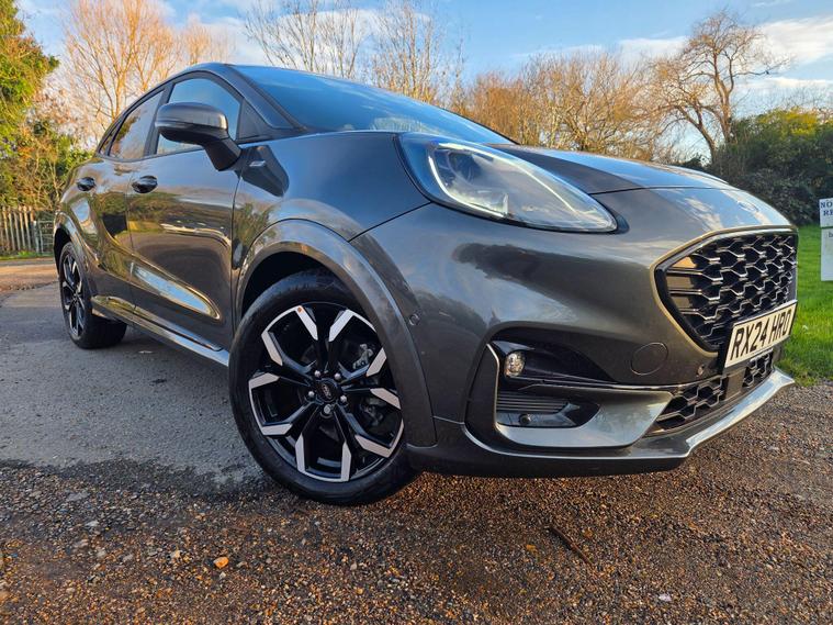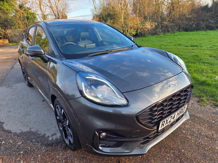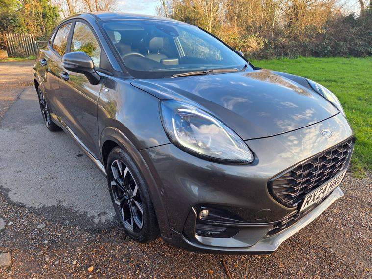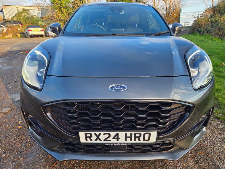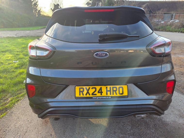 This 2024 Ford Puma ST-Line X is a superb example, boasting a single owner from new. This stylish compact SUV features a responsive 1.0L Petrol Hybrid engine, meeting Euro 6 emission standards. Its ST-Line X trim level ensures a sporty aesthetic and enhanced driving experience. Convenience is key with features like the Handsfree Power Tailgate, activated by Keyless Entry, and the comprehensive Parking Pack which includes front and rear parking sensors along with a rear camera for effortless manoeuvring. Inside, you'll find the Electronic Air Temperature Control for personalised comfort and the impressive B&O Premium Audio System integrated with Ford SYNC 3 Navigation, offering seamless connectivity through Android Auto, Apple CarPlay, and Bluetooth.The Ford Puma ST-Line X offers excellent efficiency, achieving an impressive 52 miles per gallon, a highlight that sets it apart from many other vehicles in its class. Furthermore, its low CO2 emissions contribute to a more environmentally conscious drive. These combined highlights demonstrate the thoughtful engineering and advanced technology packed into this desirable Ford Puma, making it a compelling choice for those seeking a blend of performance, practicality, and modern features..