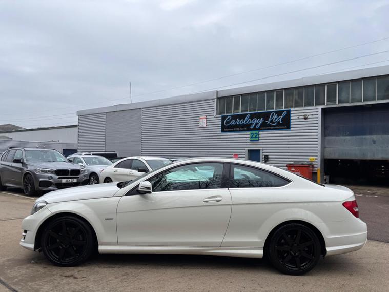 VERY CLEAN LOW MILEAGE MERCEDES BENZ C CLASS AMG SPORT - FULL MERCEDES BENZ SERVICE HISTORY - HPI CLEAR - BRAND NEW JANUARY 2027 MOT - JUST SERVICED - GORGEOUS LOOKING CAR IN EXCELLENT CONDITION - 3 MONTHS NATIONWIDE WARRANTY INCLUDED - LOOKS & DRIVES SUPERB +++ Carology LTD are pleased to offer this beautiful low mileage Mercedes Benz C Class AMG Sport Coupe finished in calcite white. It comes with a full Mercedes Benz service history consisting of 11 services and it also has a brand new 12 month MOT until January 2027. We have just carried out an annual service as part of our own preparation which included replacing the engine oil and oil filter, fitting a new air filter, 2 new front suspension arm and replacing the front brake discs and pads so its ready to drive away. Overall this is a lovely example is in excellent condition, the bodywork is very good, the interior still looks bright and clean plus we have just refurbished the alloy wheels in black pearl which has really finished her off. This is really clean example, drives really well and offers excellent economy and performance. +++ FULL VOSA HISTORY REPORT TO VERIFY MILEAGE, HPI CLEAR, AA APPROVED DEALER, NATIONWIDE DELIVERY AVAILABLE, 3 MONTH COMPREHENSIVE WARRANTY INCLUDED - UP TO 24 MONTHS NATIONWIDE WARRANTY AVAILABLE AT COMPETITIVE PRICES - DEBIT & CREDIT CARDS ACCEPTED, PART EXCHANGE WELCOME, 2 KEYS, 12 MONTHS AA BREAKDOWN COVER, ZUTO CAR FINANCE APPROVED DEALER. +++ We are a Saab and Mitsubishi specialist based in Peterborough, Cambridgeshire. We have a fully qualified Saab Master Technician and full Tech 2 Saab and MUT Diagnostic facilities. For further information or to make an appointment to view this car please call us on 01733604498 or you can email us via autotrader or our website anytime. Video walk rounds available immediately via WhatsApp. Viewing by appointment..