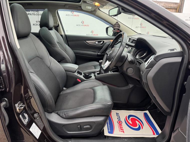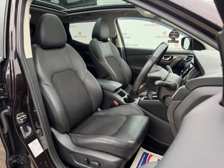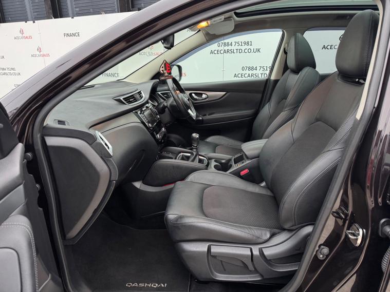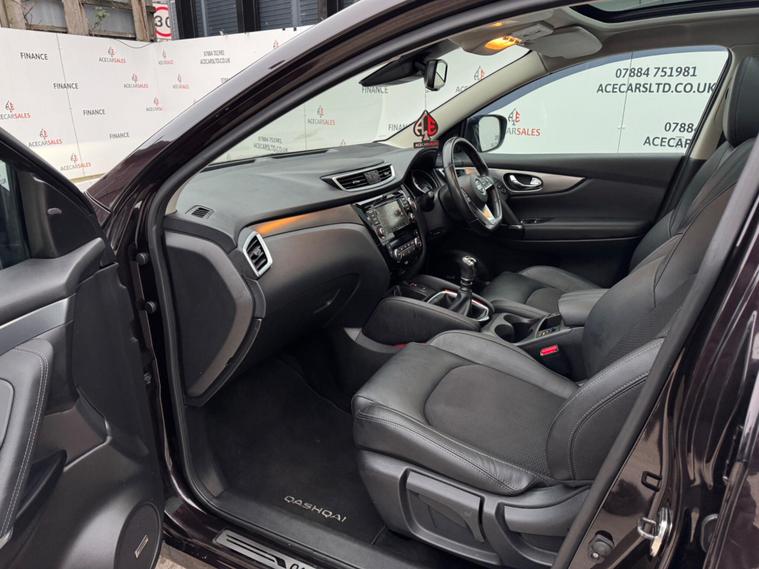 FINANCE & PCP AVAILABLE, COMPLEMENTARY WARRANTY INCLUDED, GOOD CONDITION, WE TAKE PART EXCHANGE! Nissan Qashqai 1.5 dCi Tekna Euro 6 (s/s) 5dr Manual 6 Speed. HPI Clear, Full Service History, 12 Months MOT Included With No Advisories, 2 Owners, 2 Keys, EURO6 ULEZ Compliant, Fuel Consumption 67.2MPG, Insurance Group 15, Panoramic Glass Sunroof Fixed, Smart Vision Pack, Tech Pack, Executive Pack, Keyless Entry, Keyless Start, Cruise Control, Speed Limit Function, Reverse Camera, Intelligent Park Assist Function, Intelligent Around View Monitor, Parking Sensors, Safety Shield, Blind Spot Assist, Front Collision Avoidance, Lane Departure Warning, Hill Start Assist, Steering Control Sport/Normal, Chassis Control With Trace Control/Engine Brake, Electric Parking Brake With Autohold Function, Traction Control, Anti Lock Brake System, Electronic Stability Programme, Electronic Brakeforce Distribution, Brake Assist, Tyre Pressure Monitoring System, Automatic Headlights, Headlights - LED, Daytime Running Lights, Auto Wipers, Electric Windows, Electric Mirrors, Powerfolding Mirrors, Electric Drivers Seat With Front Heated Seats, Automatic Dual Zone Climate Control, Air Conditioning, Front Heated Screen, Rear Screen Demister, Colour Touchscreen Media Interface, Drivers Information Cluster, BOSE Sound System, Navigation, Traffic Information, Apple Carplay, Android Auto, Bluetooth, Radio, DAB, CD, AUX, Telephone Connection, Voice Control, Multifunctional Steering Wheel, Leather And Cloth Design Seats, Carbon Graphite Interior Trims, Aluminium Design Exterior Trims, Roof Rails, Privacy Glass, 19inch Alloy Wheels.ALL VEHICLES ARE FULLY INSPECTED PRIOR TO SALE. Wish to make this purchase hassle free with ease? Feel free to enquire about our competitive Financial packages. We can assist you in securing finance for your New car with ease- regardless of your credit status/history. We include a COMPLEMENTARY WARRANTY on all our vehicles. 'Buy With Confidence At Ace Car Sales' Be our next happy customer today! dealer's website