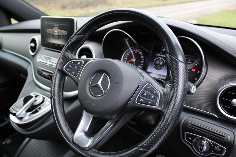 HN Automotive proudly present this low mileage Mercedes V-Class LWB, finished in Obsidian Black Metallic paintwork, over black Nappa leather interior. Owned by the previous keeper since 2018, purchased as an ex demonstrator from Mercedes, this car has covered just 41, 000 miles and is in great condition throughout. This V-Class has been used by the family of corporate company, and hasn't been used for taxi or chauffeur duties. The AMG Line model also benefits from a great specification, including;- Panoramic sunroof- Climate control- Heated leather interior- LED headlights with high beam assist - Satellite Navigation- Reverse camera- Bluetooth- Privacy glass- Ambient lighting- Cruise controlSupplied with some previous service history, including a full service, along with gearbox service just completed for retail. We will also provide 12 months MOT and 3 months warranty.In great condition throughout, with very clean and tidy bodywork, including freshly refurbished alloy wheels, shod with nearly new matching tyres all round. The interior is also in excellent condition, free from any pet or smoke odours. Supplied with the full handbook pack, x2 keys and locking wheel, along with previous service and MOT documentation.HN Automotive can provide both finance and part exchange facilities - please feel free to get in touch with our sales team for further information. Viewings are welcomed by appointment, simply give us a call, send us a message or book a test drive at your convenience, directly via our website..