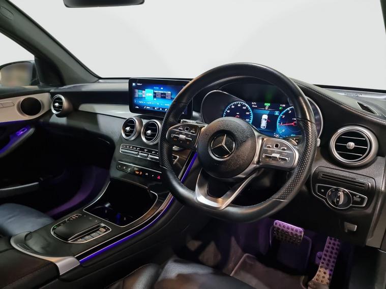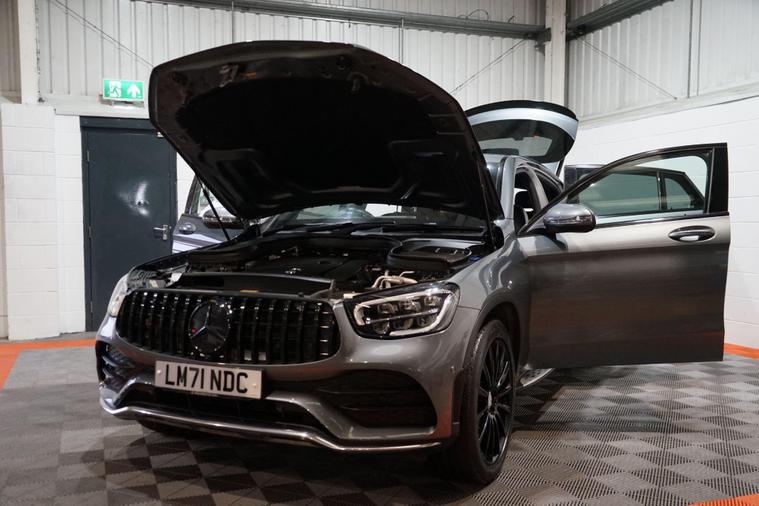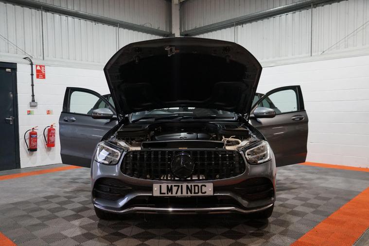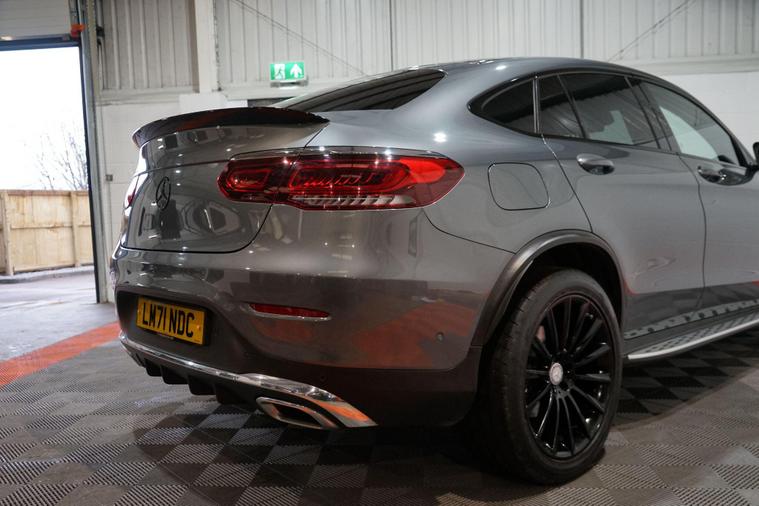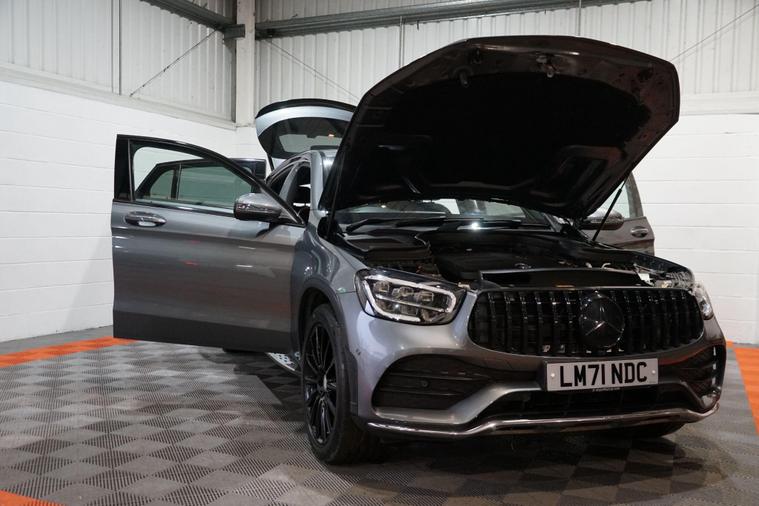 We are pleased to present this Mercedes-Benz GLC 2.0 GLC300h MHEV AMG Line (Premium) Coupe G-Tronic+ 4MATIC Euro 6 (s/s) 5dr, finished in elegant Selenite Grey and complemented by striking black 20-inch AMG alloy wheels. Combining coupe-inspired styling with advanced hybrid technology and premium comfort, this GLC delivers a refined yet efficient driving experience.Powered by a 2.0-litre petrol engine paired with Mercedes’ mild-hybrid (MHEV) system, the GLC300h uses electric assistance to support acceleration, reduce fuel consumption, and improve overall efficiency. The hybrid system allows smoother stop/start operation and helps optimise performance in everyday driving, particularly in urban and stop-start conditions. As a result, the GLC300h is capable of achieving strong real-world fuel economy, with combined mpg figures typically in the mid-40s, making it a highly efficient choice for a powerful four-wheel-drive SUV coupe.The smooth G-Tronic+ automatic gearbox works seamlessly with the 4MATIC all-wheel-drive system, providing confident traction in all weather conditions and a relaxed, effortless drive on longer journeys. The AMG Line (Premium) specification adds sporty styling touches and a high level of luxury, creating a cabin that feels both dynamic and indulgent.Inside, the interior features high-quality materials, advanced digital displays and intuitive infotainment, alongside comfort-focused features expected of the Premium specification. The coupe roofline enhances the car’s sleek road presence, while still offering practical rear seating and a usable boot for everyday needs.With its blend of modern hybrid efficiency, impressive mpg, confident 4MATIC capability and standout AMG styling, this Mercedes-Benz GLC300h Coupe represents an excellent opportunity to enjoy premium SUV performance with reduced running costs and enhanced refinement..