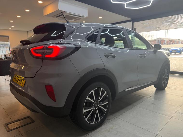 This 2023 Ford Puma T Titanium is a superb example, having had only one owner since new. This stylish compact SUV features a responsive 1.0L Petrol Hybrid engine, meeting the Euro 6 emission standards. Inside, you'll find the convenient Ford SYNC 3 Navigation system, complete with Android Auto, Apple CarPlay, and Bluetooth connectivity, alongside Electronic Air Temperature Control for effortless climate management. Parking is made simpler with rear parking sensors providing valuable parking assistance.With an impressive highlight fuel economy of 52 mpg, this Puma offers excellent efficiency for your journeys, further enhanced by its low CO2 emissions, setting it apart from many other vehicles in its class. This combination of advanced technology, economical hybrid performance, and single owner provenance makes this Ford Puma a truly compelling choice..