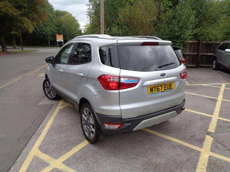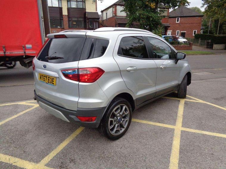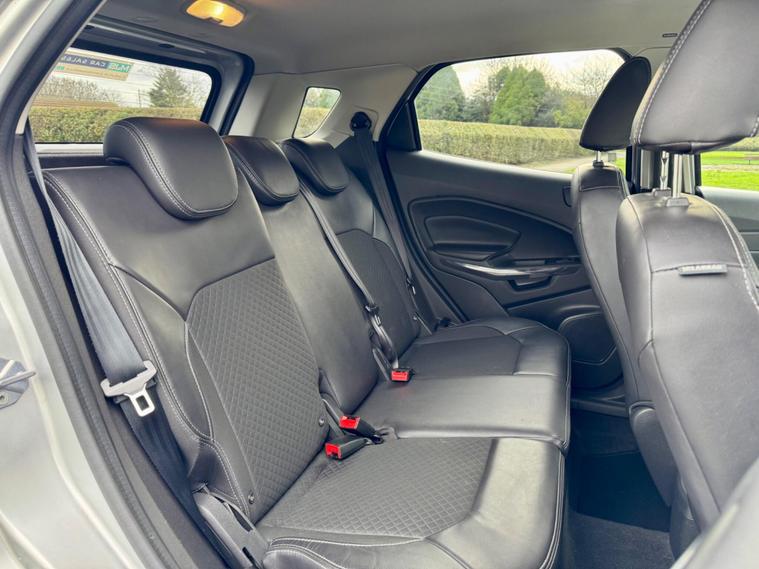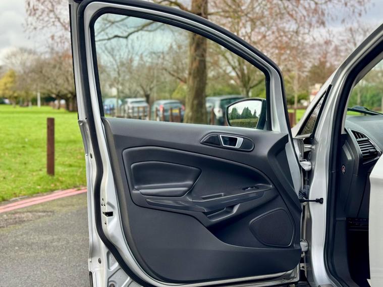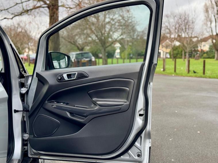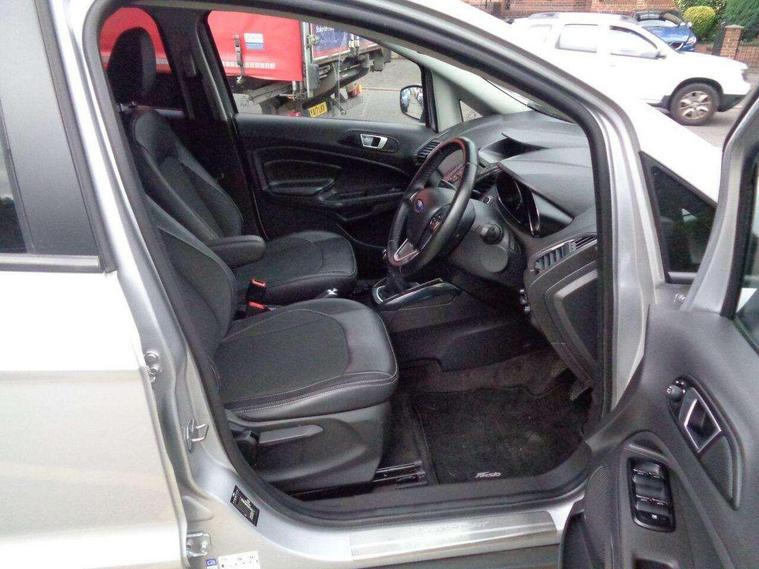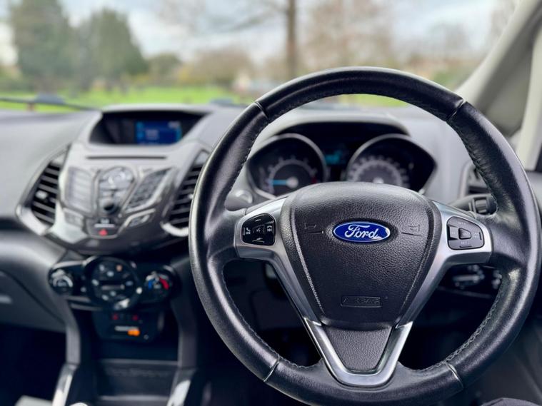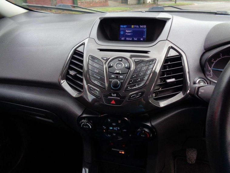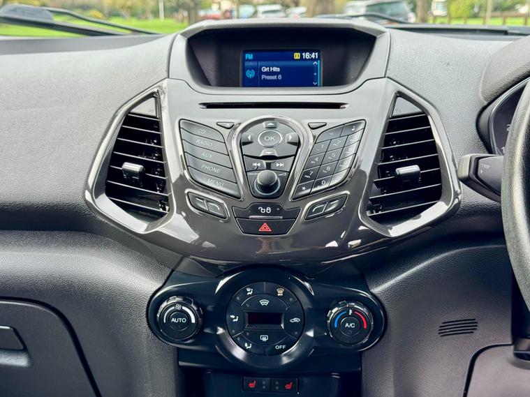 This 2017 Ford EcoSport T Titanium presents a remarkable opportunity with its exceptionally low mileage of just 47, 500 miles for its age. This well maintained example is powered by an efficient 1.0L petrol engine and meets Euro 6 emissions standards. Inside, you'll find the advanced Ford DAB Navigation System featuring Ford SYNC3, which seamlessly integrates with both Android Auto and Apple CarPlay, alongside Bluetooth connectivity for effortless calls and music streaming. Convenience is further enhanced by automatic headlights that illuminate when needed and a rear view camera paired with rear parking sensors to assist with manoeuvring.Enjoy a comfortable driving experience thanks to the Electronic Automatic Temperature Control (EATC) system, ensuring the cabin remains at your preferred temperature. This EcoSport also boasts impressive fuel economy, achieving up to 54 miles per gallon, and benefits from low CO2 emissions, making it a more economical choice compared to many similar vehicles. These highlights demonstrate the thoughtful specification and efficient nature of this particular Ford EcoSport..