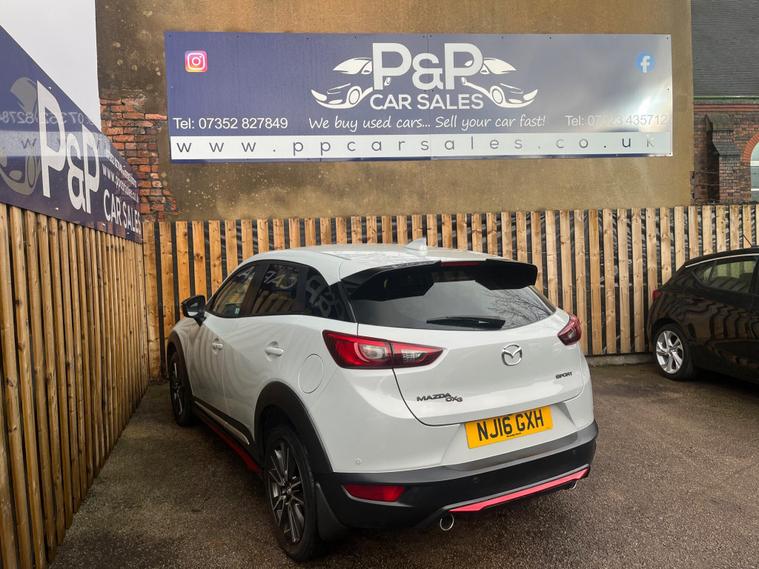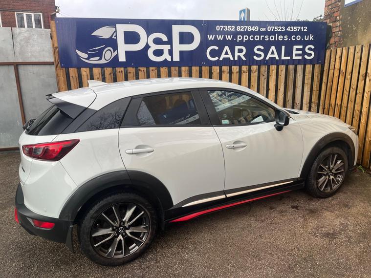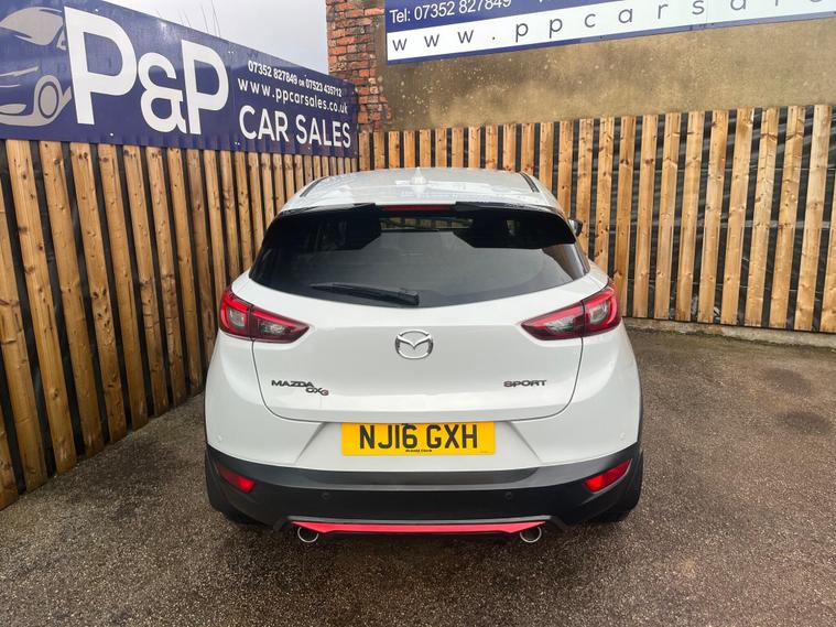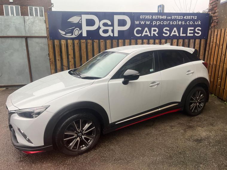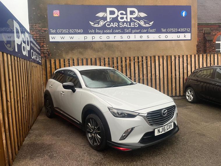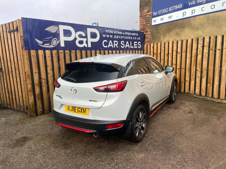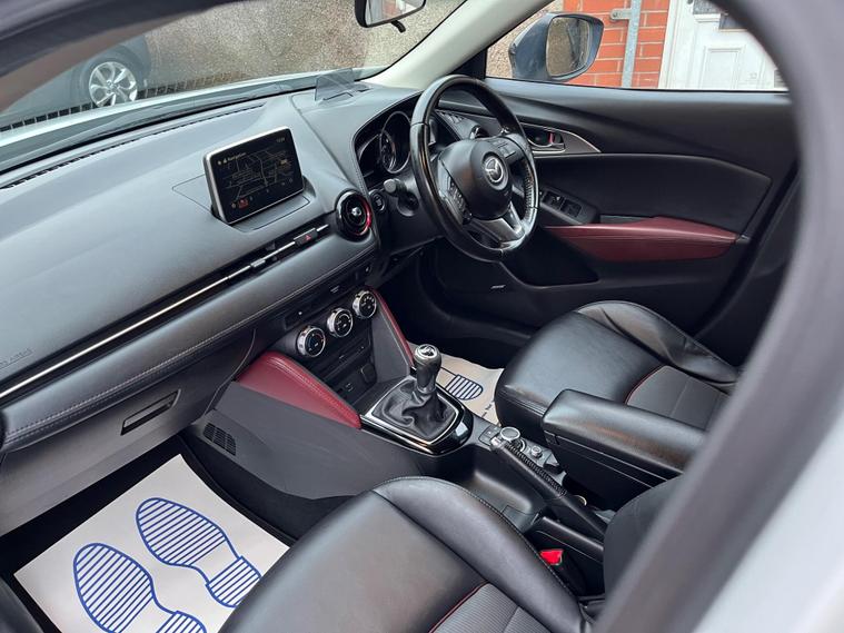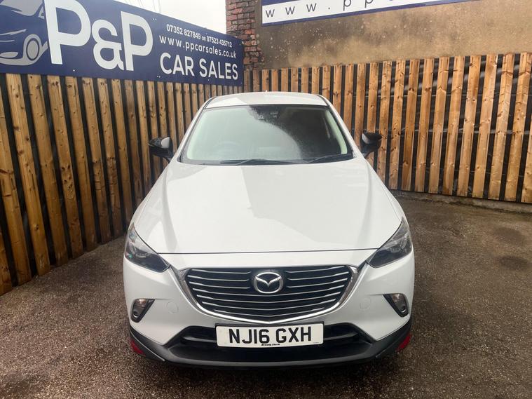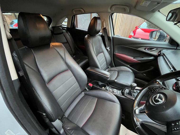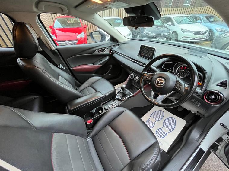 This stunning Mazda CX-3 is finished in the stunning Ceramic White and looks astonishing in any light. The car comes with part service history, a clean 12 months MOT certificate, 12 months AA breakdown cover and 3 months warranty. Additionally we have extended nationwide packages available, please talk to one of our team to explore further options to give that extra peace of mind. This 2016 Mazda CX-3 SKYACTIV-D Sport Nav is a well maintained example of this popular compact SUV. It features a 1.5 litre diesel engine and meets Euro 6 emissions standards. Inside, you will find automatic climate control, heated front seats for added comfort, and a premium BOSE sound system for an enhanced audio experience. The Sport Nav trim also includes a useful head up display and rear parking sensors to aid manoeuvring.This CX-3 offers excellent running costs, achieving an impressive 71 miles per gallon, which is significantly better than many other vehicles in its class. Its low CO2 emissions also contribute to its economical profile. Furthermore, this model benefits from a low insurance group, making it an affordable choice for many drivers..