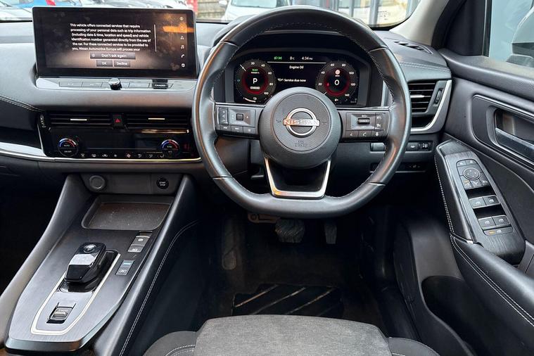 This 2023 Nissan Qashqai h e-POWER N-Connecta is a Nissan manufacturer approved vehicle, boasting a single owner from new. It features a sophisticated 1.5 litre petrol hybrid engine, meeting Euro 6 emission standards. The N-Connecta trim level comes equipped with Intelligent Auto Headlights that activate automatically, and a dual zone climate control system with a pollen filter to ensure passenger comfort. For seamless connectivity, it offers wired Android Auto, while parking is made easier with rear parking sensors and a rear view camera.Experience impressive performance with this Qashqai, achieving 0-62mph in just 7.9 seconds. Its fuel economy is a notable highlight, delivering an excellent 54 miles per gallon, and it also boasts low CO2 emissions, making it a more environmentally conscious choice. Furthermore, you will appreciate the generous boot space, offering ample room for all your luggage and shopping needs..