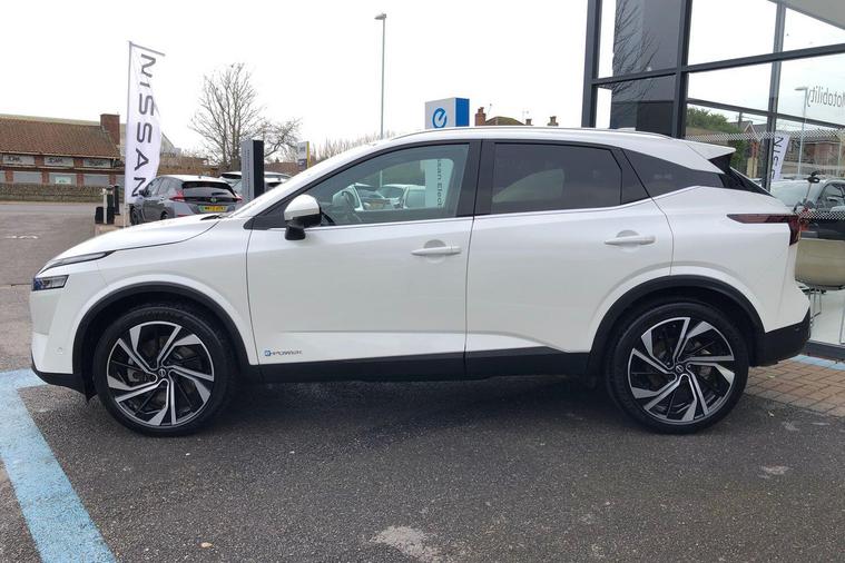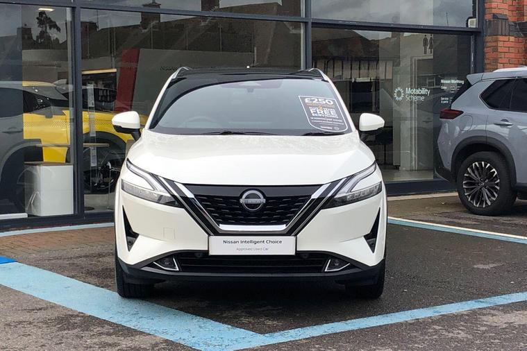 Boasting exceptionally low mileage for a 2024 model, this Nissan Qashqai h e-POWER Tekna+ presents a superb opportunity. As a Nissan manufacturer approved vehicle, it comes with the reassurance of a 12 month warranty and a full service history. This Tekna+ variant is equipped with a 1.5L petrol hybrid engine, meeting Euro 6 emission standards. Notable features include Blind Spot Warning with Intelligent Blind Spot Intervention, a Rear View Camera for parking assistance, and an Intelligent Around View Monitor offering a 360 degree camera perspective. The vehicle also benefits from LED headlights with Adaptive Driving Beam for enhanced visibility.Experience impressive performance with this Qashqai, achieving 0-62mph in just 7.9 seconds, a highlight that demonstrates its responsiveness compared to similar vehicles. Its fuel economy is a standout feature, achieving an excellent 53 mpg, and it also boasts low CO2 emissions, making it an efficient choice. With only 3119 miles on the clock, this Qashqai offers a near new driving experience..