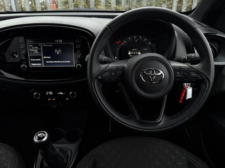 This 2023 Toyota Aygo X VVT-i Edge is a Toyota manufacturer approved vehicle with a full service history, having had only one owner and a mere 13, 140 miles on the clock. It boasts a 1.0L Euro 6 petrol engine and comes with a 12 month warranty, alongside an MOT valid until June 2026. The last service was completed on 2025-07-15 at 10, 807 miles. Notable features include a reversing camera with parking assistance, intelligent adaptive cruise control with a switch on the steering wheel, automatic air conditioning, and smartphone integration for both Apple CarPlay and Android Auto, all part of the comprehensive Toyota Safety Sense system.The Aygo X Edge stands out with its impressive fuel economy of 59 mpg, indicating it is more economical than many similar vehicles. Furthermore, its low insurance group and low CO2 emissions highlight its cost effectiveness and environmental consideration compared to other cars in its class. This combination of efficiency, advanced features, and excellent provenance makes this Aygo X a compelling choice..