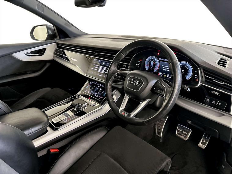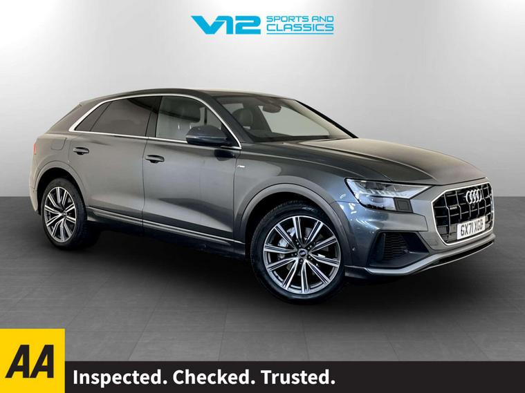 This 2021 Audi Q8 TFSI V6 S line is a superb example, having been owned by just one discerning individual. This impressive four wheel drive SUV boasts a powerful 3.0 litre petrol engine, meeting Euro 6 emissions standards. Its S line trim level ensures a sporty aesthetic and enhanced specification, complemented by advanced HD Matrix LED headlights with dynamic front and rear indicators. For convenience, it features a rear view camera for easier parking, electrically adjustable front seats with a driver memory function, and a 2 zone automatic climate control system. Comfort is further enhanced by heated front seats, making every journey a pleasure. The Audi Q8 TFSI V6 S line offers a compelling blend of performance and practicality. Its acceleration is notably brisk, achieving 0 to 62 miles per hour in just 5.9 seconds, demonstrating its dynamic capabilities. This performance, combined with its substantial 2800 kg towing weight, positions it as a versatile choice for various needs. Furthermore, the generous boot space provides ample room for luggage or shopping, making it an ideal companion for both daily commutes and longer adventures.For peace of mind this vehicle has only had 1 registered owner and has completed a multi point AA dealer's website finance is also available.We are open 7 days a week and have more than 1500 cars to choose from.All our Euro 4 Petrol and Euro 6 Diesel vehicles meet the ULEZ standard.Vehicle specification can be found below. From time to time vehicles have manufacturer recalls notified. Please read our recall policy on our website for further information..