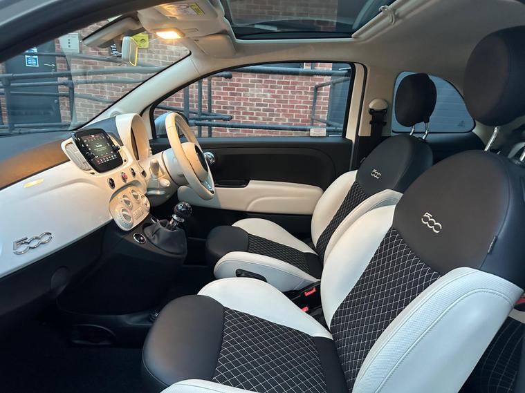 This 2021 Fiat 500 Dolcevita is a superb example, having had only one owner since new. This stylish city car boasts a 1.0 litre petrol engine, meeting Euro 6 emission standards. Inside, you'll find comfortable Black Ivory fabric upholstery with an Ivory ambience, and the front seats feature a memory function for your convenience. Stay connected and entertained with Apple CarPlay and Android Auto, accessed via the 7in HD touchscreen radio which also includes 3D navigation, Bluetooth, USB, and DAB digital radio. Parking is made easier with rear parking sensors.The Fiat 500 Dolcevita offers excellent running costs, achieving an impressive fuel economy of 61 miles per gallon, which is better than many similar vehicles. Its low CO2 emissions and low insurance group also contribute to its affordability, making it an economical choice for everyday driving..