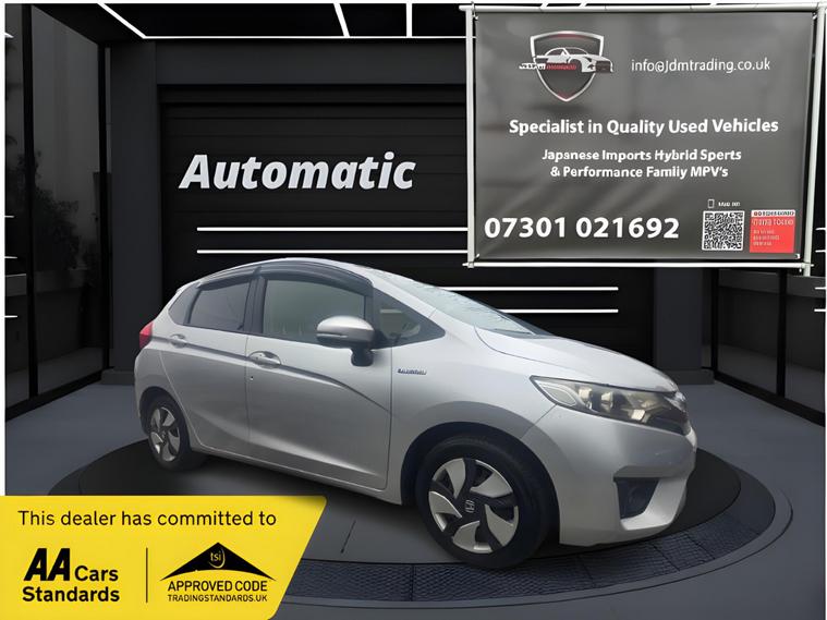 Here is another Fresh imported fabulous looking Honda Jazz finished in a Pearlescent Silver. This is a very spacious 1.3 cc Hybrid hatchback, Fresh direct Japanese import 1 of many we import ourselves. MORE COLOURS AVAILABLE. Vehicles from Japan are maintained to a high level always warm climate means RUST free and trouble free. This Honda has covered 58k miles and is very tidy on the inside and outside. All our hybrid's come fully serviced including all 4 spark plugs with all filters replaced, And brand-new batteries where needed. This car will have a fresh 12 months MOT for that peace of mind. This has every optional extra you can think of, benefits of the low fuel consumption drive in any clean air zone city, very easy to drive and park, HYBRID 65+MPG with stop start feature. Good tyres Excellent bodywork, Air Con - Manual, Airbag - Front Side, Airbag Passenger SRS with Cut Off Switch, Abs brakes, Airbag - Side Curtain - Front and Rear, Alarm System, Bluetooth Hands Free Telephone - HFT, Cruise Control, 4x electric windows Automatic folding mirrors, VSA - Vehicle Stability Assist. 5 seats, stow away rear seats, ample storage very spacious boot space. Android touchscreen hands free with built in reverse camera. Remote Keyless Entry, adding convenience and comfort to your journeys. Viewing test drives always welcome, Any Exterior or cosmetic imperfections will be in line with the age and mileage of the car. All Vehicles come with a complementary 3month’s Warranty on full screen price only with options to upgrade up to 3 years from as little as £349. Some late night viewings can also be arranged. Why Buy from JDM Trading Ltd??Award-Winning Customer Service (2020-2025) with Over 300+ 5-Star Reviews? Specialists in Quality Used & Japanese Import Vehicles? All Debit & Credit Cards Accepted? Delivery Available Anywhere in the UK Mainland (T&Cs Apply)? Family-Owned Business with a ''Transparent Trouble-Free Motoring'' Approach. Nationwide delivery Anywhere in UK mainland..