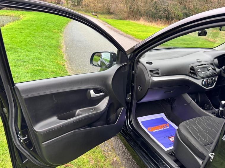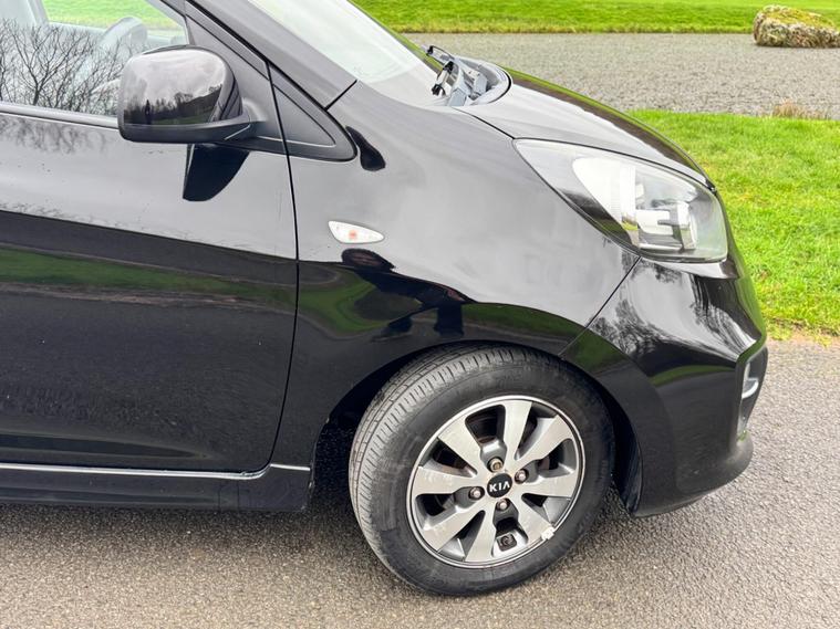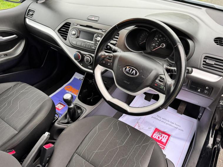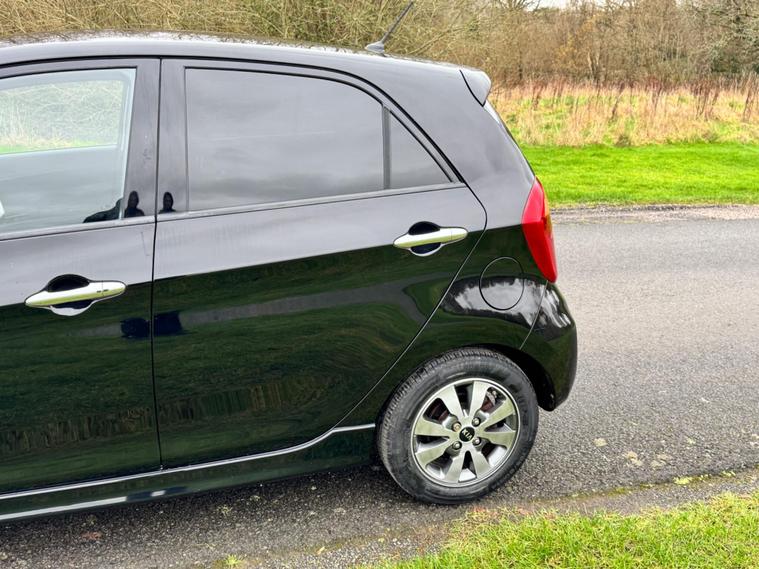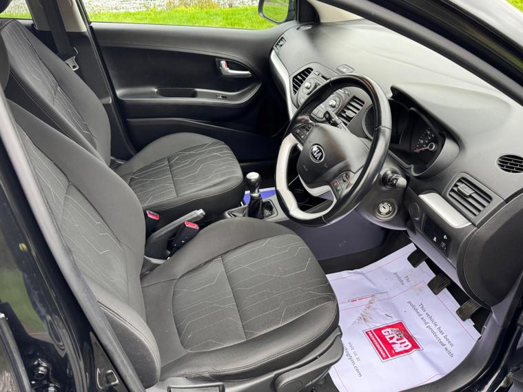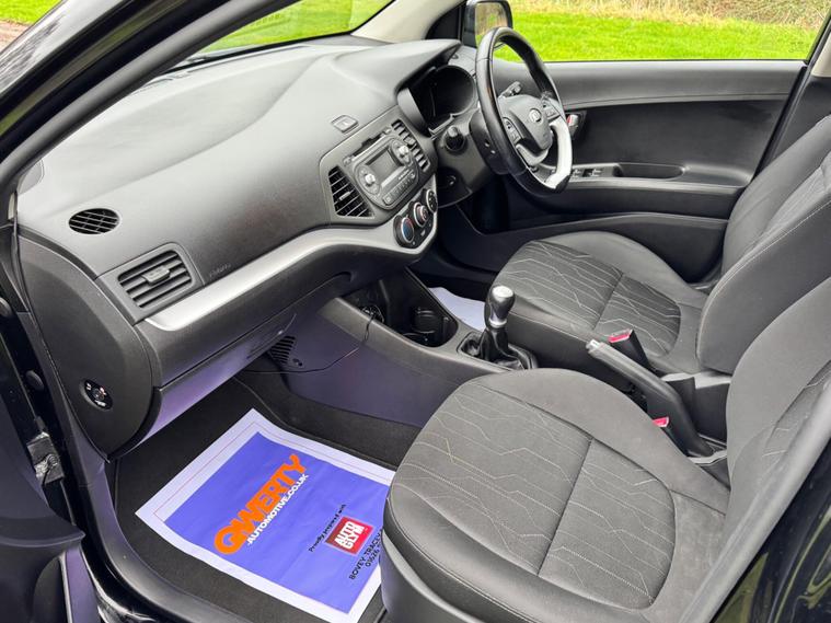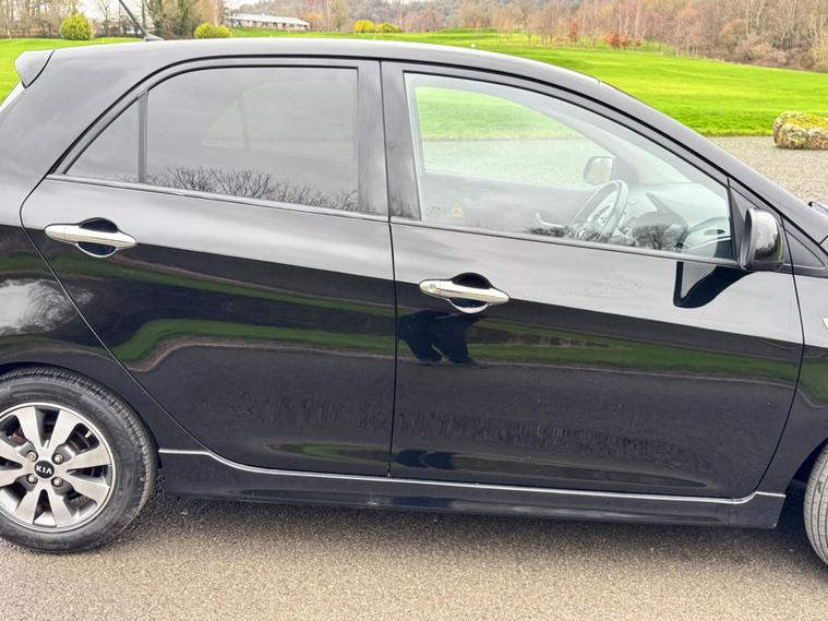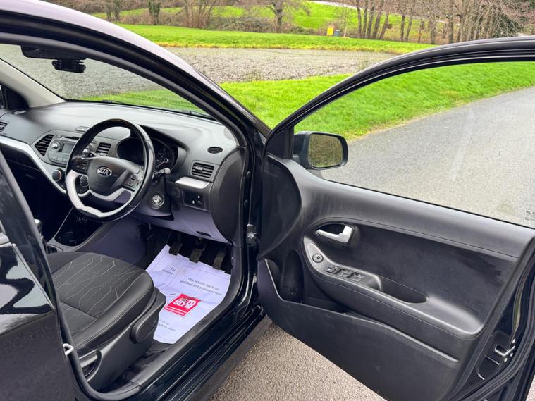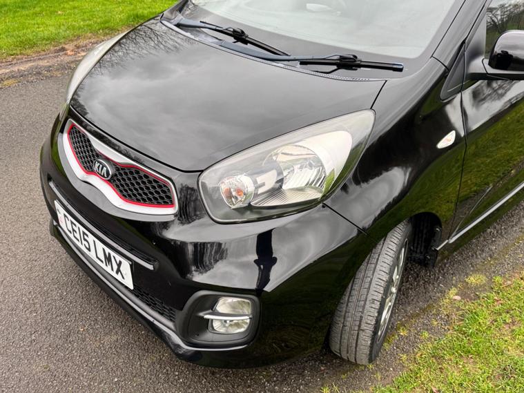 We are pleased to be presenting this 2015 Kia Picanto 1.0 VR7 Euro 5 5dr, finished in black and having covered 30, 000 miles from new. This example has had 2 owners, with pre-registration at Gravills Kia counting as one, followed by one private owner from new. Condition is superb throughout.It comes with 4 services recorded from new. As part of our preparation, we have replaced the front and rear brake discs and pads.Running costs are low with ULEZ compliance, £20 annual road tax, insurance group 5E, and 67 MPG combined.Being the VR7, this is the top specification and comes equipped with air conditioning, alloy wheels, heated front seats, heated steering wheel, rear parking sensors, Bluetooth phone connectivity, electric windows, and remote central locking.As with all our vehicles, this Kia has been treated to a multi-stage valet using the best products Auto Glym have to offer. Every car we handle receives, at minimum, a service as part of our pre-sale preparation. Supplied with 12 months MOT without advisory, our complimentary 3-month warranty, 12 months free AA breakdown cover, and 2 keys.Please do not hesitate to get in touch via Text, Call or Email at any time to arrange a viewing and test drive. Viewing available by appointment only. To find out more about us, head to dealer's website Whilst every effort has been made to ensure the accuracy of the above information, sometimes errors may occur — please check with a salesperson..