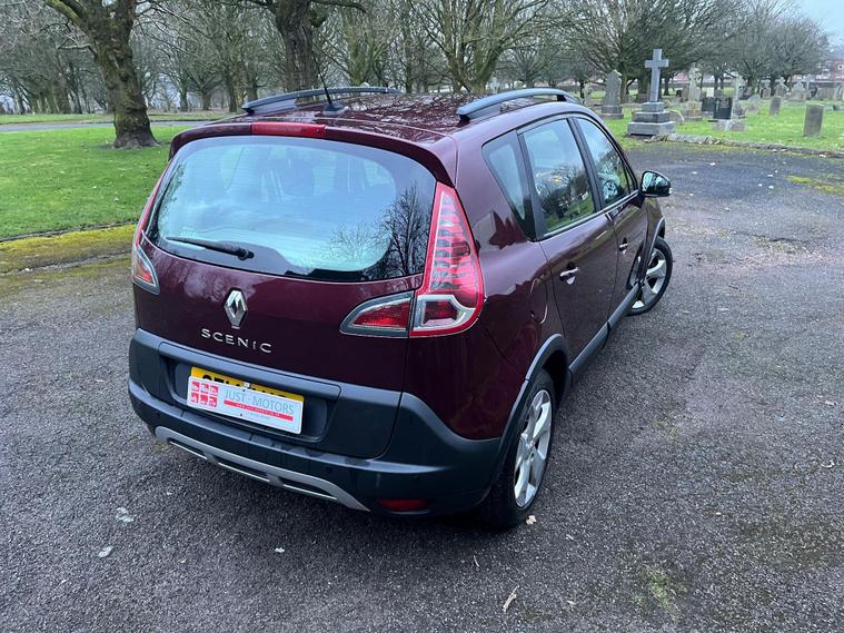 RENAULT SCENIC XMOD 1.5 DCI DYNAMIQUE TOMTOM IN A RED EXTERIOR COLOUR WITH GREY/BLACK CLOTH INTERIOR... FULL SERVICE HISTORY WITH RECENT SERVICE DONE AT 80K MILES... COMES WITH 2 REMOTE KEYS... LONG MOT... FEATURING DAYTIME RUNNING LIGHTS DRL... REAR PARKING SENSORS... MULTIFUNCTION STEERING WHEEL WITH CRUISE CONTROL... CD FM RADIO BUILT IN NAVIGATION SYSTEM, BLUETOOTH CONNECTIVITY, RADIO SETTINGS AND USB/AUX PORTS... PUSH BUTTON START... ROOF BARS... FINGER TIP RADIO CONTROLS... AUTO LIGHTS AND WIPERS... FOG LIGHTS... CLIMATE CONTROL WITH FRONT AND REAR HEATED WINDOWS... CENTRAL LOCKING DOOR CONTROLS... ELECTRIC ADJUSTABLE SIDE MIRROR... ALL ROUND ELECTRIC WINDOWS... ALLOY WHEELS WITH DECENT TREAD ALL ROUND....