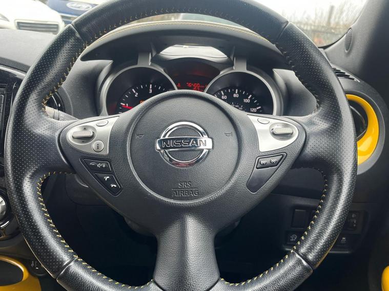 NISSAN JUKE 1.5 DCI TEKNA IN A WHITE EXTERIOR COLOUR WITH BLACK LEATHER SEATS WITH YELLOW STITCHING WITH YELLOW INTERIOR TRIM... COMES WITH 12 MONTHS MOT... FULL SERVICE HISTORY WITH A RECENT SERVICE DONE... CAMBELT AND WATER PUMP CHANGED AT 55K MILES... £20 ANNUAL ROAD TAX... 2 REMOTE KEYS... FEATURING 360 CAMERA... DRIVE MODES... DAYTIME RUNNING LIGHTS DRL... PRIVACY GLASS... CD TOUCHSCREEN RADIO WITH BUILT IN NAVIGATION SYSTEM, BLUETOOTH CONNECTIVITY, RADIO SETTINGS AND USB/AUX PORTS... BLIND SPOT DETECTOR... AUTO LIGHT AND WIPERS... FOG LIGHTS... KEYLESS ENTRY AND START... MULTIFUNCTION STEERING WHEEL WITH RADIO AND CRUISE CONTROL LIMITER... AUTO STOP/START... TYRE PRESSURE RESET CONTROL... LANE ASSIST... CLIMATE CONTROL WITH FRONT AND REAR HEATED WINDOWS... ELECTRIC ADJUSTABLE SIDE FOLDING MIRRORS... FUEL CAP RELEASE LEVER... ALL ROUND ELECTRIC WINDOWS... CENTRAL LOCKING DOOR CONTROLS... CUP HOLDERS... ALLOY WHEELS WITH DECENT TREAD ALL ROUND... WARRANTY INCLUDED... ALL PART EXCHANGES ARE WELCOME... OPTIONAL NATIONWIDE DELIVERY EXTRA... BOOK-INS AND VIDEO VIEWINGS ARE AVAILABLE... TEST DRIVES ARE WELCOME... FOR MORE INFORMATION CALL US TODAY ON 01616232309..