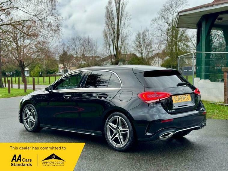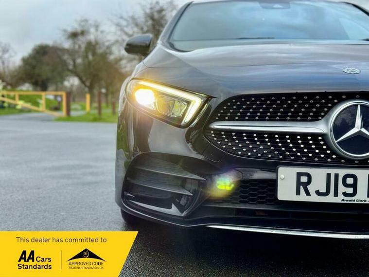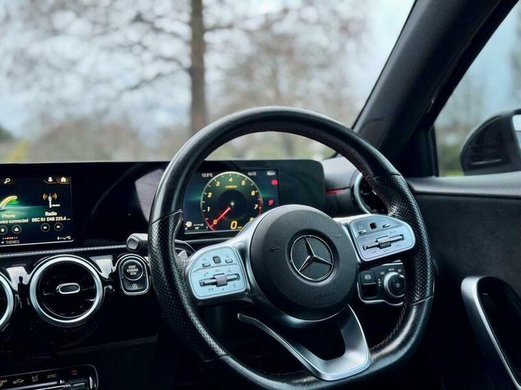 This 2019 Mercedes Benz A Class A220 AMG Line offers a compelling blend of performance and premium features. Powered by a 2.0L petrol engine and meeting Euro 6 emission standards, this AMG Line variant is equipped with striking LED High Performance Headlamps that include integrated LED Daytime Running Lights, ensuring excellent visibility. Parking is made simpler with a 180 degree view reversing camera, complete with parking guidelines. Inside, you'll find the convenience of a Dual Bluetooth interface offering two USB Type C ports, and the comfort of THERMOTRONIC luxury automatic climate control with two zones and a display. The Headlamp Assist feature automatically activates the headlights, adding to the ease of driving.Experience swift acceleration with this A Class, achieving 0-62mph in just 6.9 seconds, a performance that sets it apart from many similar vehicles. This impressive speed is complemented by a generous boot space, offering practicality for everyday needs and longer journeys. The combination of its dynamic performance, advanced technology, and ample storage makes this Mercedes Benz A Class a well rounded and desirable choice..