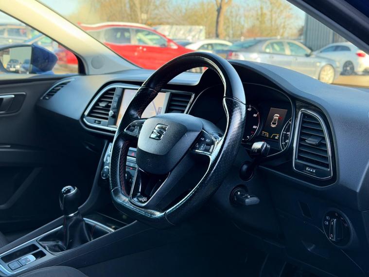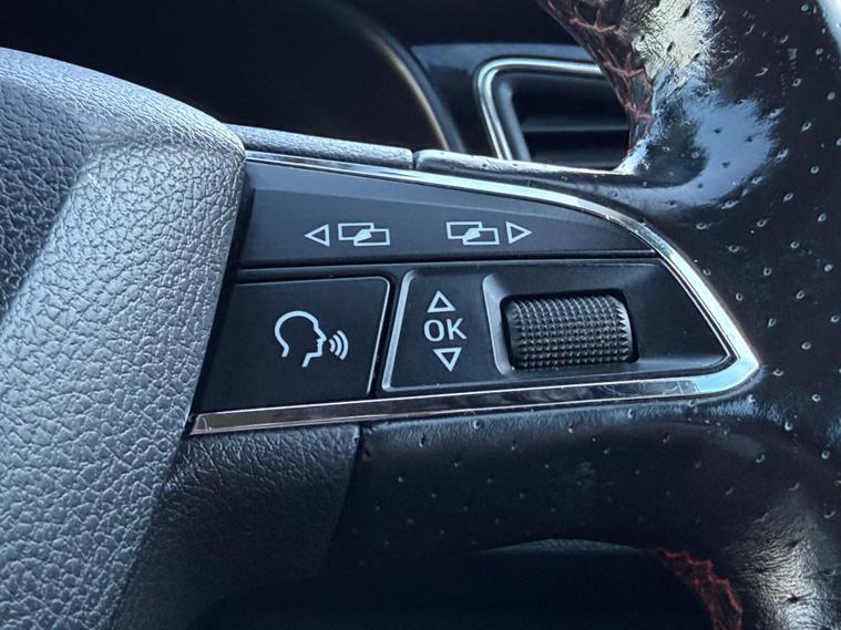 - Steering Wheel - Flat-Bottomed Perforated Leather with Red Stitching and FR Logo