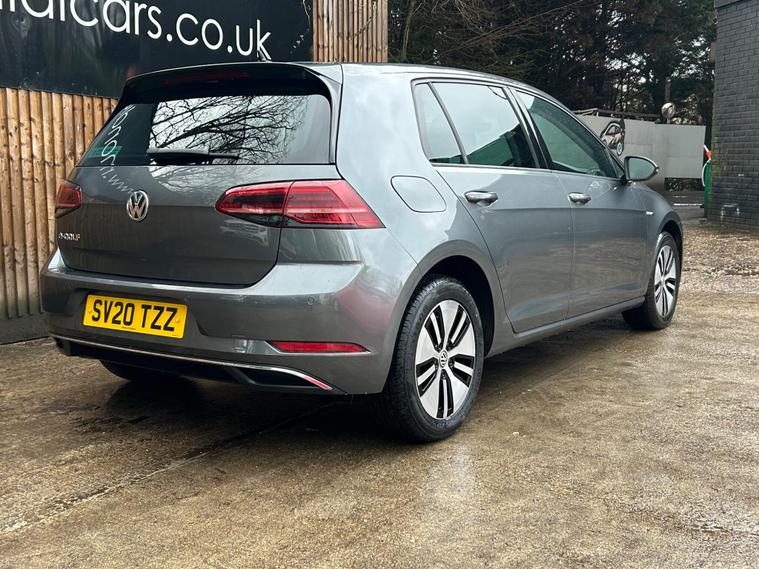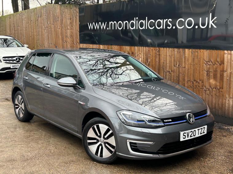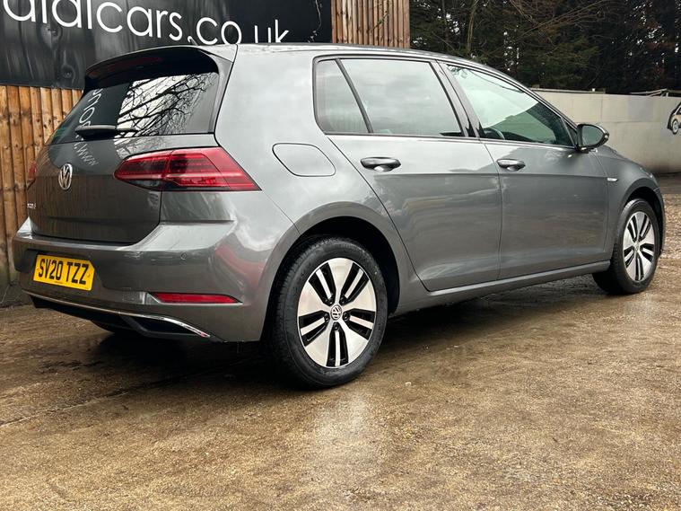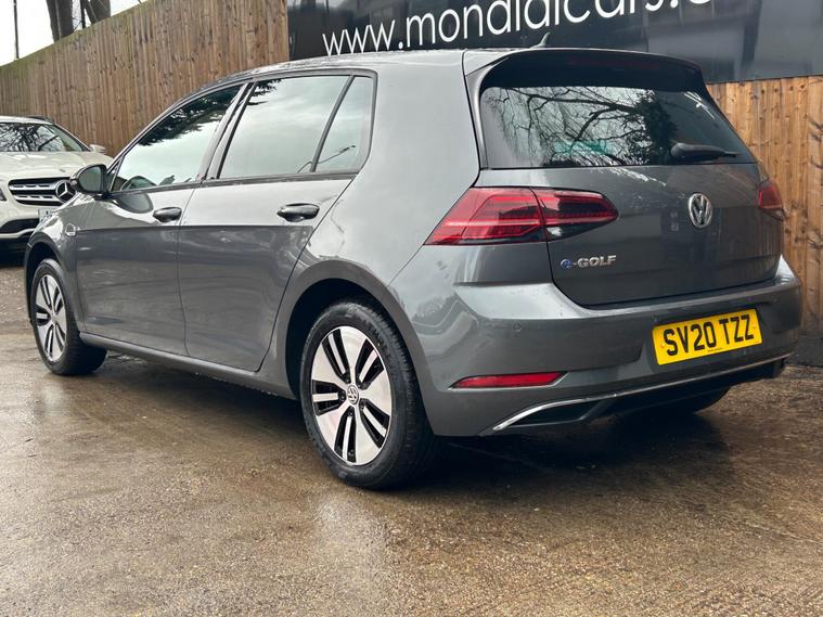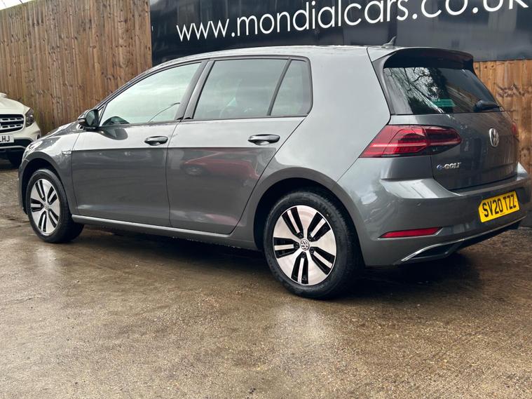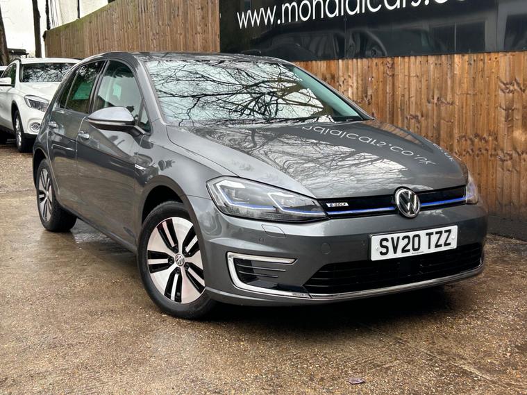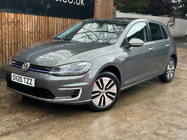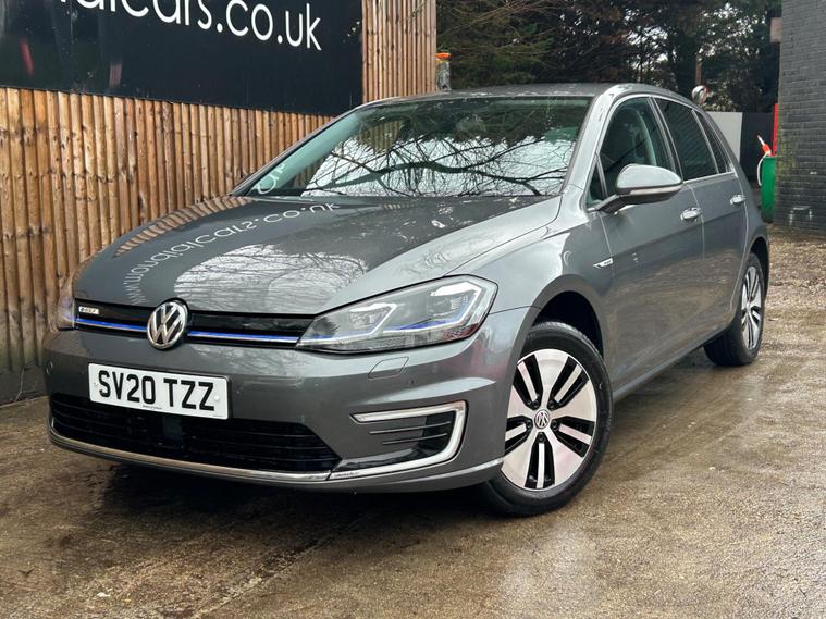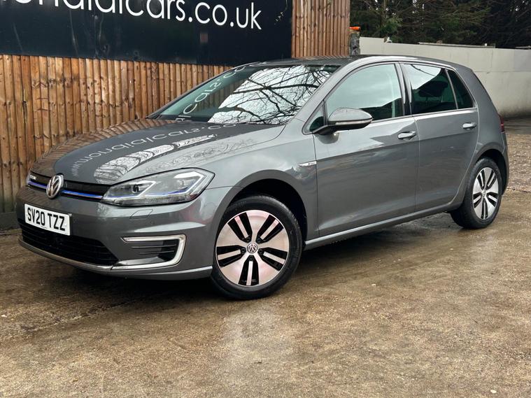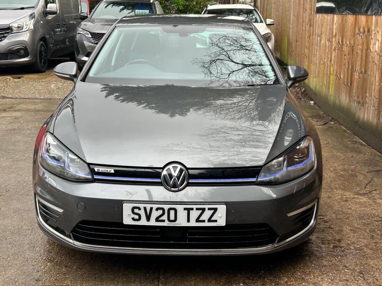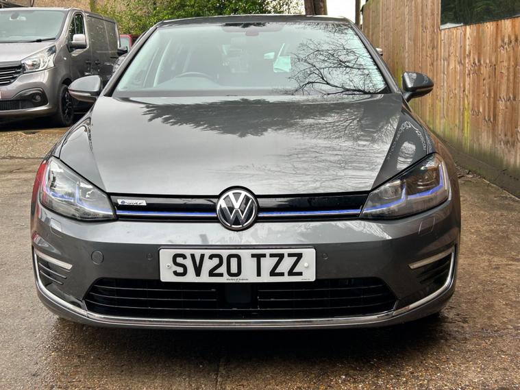 Discover this 2020 Volkswagen e-Golf, a superb electric hatchback offering a blend of efficiency and modern technology. This particular e-Golf variant boasts a 36 kWh battery, providing a maximum range of 144 miles when new, making it ideal for both daily commutes and longer journeys. Charging is convenient, with a full charge achievable at home in approximately 5 hours and 20 minutes using a 7kW charger, and a rapid charge to 80% taking just 40 minutes at a public charging station.This Volkswagen e-Golf comes equipped with a host of notable features designed to enhance your driving experience. Enjoy the convenience of Adaptive Cruise Control, automatic LED headlights that activate with a dusk sensor, and a Climate Control system to maintain your preferred cabin temperature. The large boot space offers practicality for all your needs. These features collectively demonstrate how this e-Golf provides a superior and more comfortable driving experience compared to other vehicles in its class..