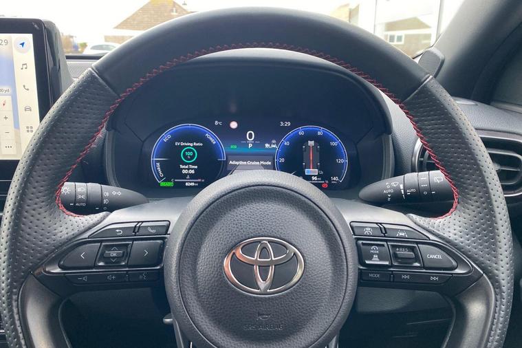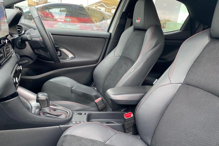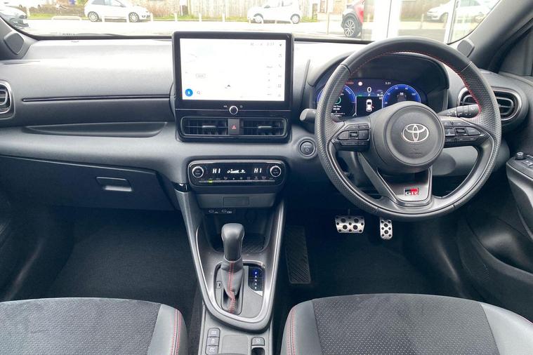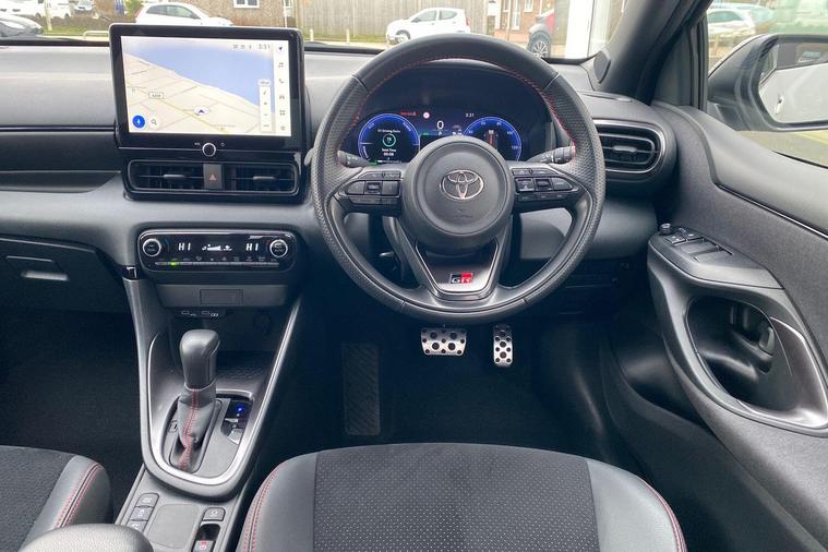 This 2024 Toyota Yaris VVT-h GR SPORT is a Toyota manufacturer approved vehicle with a full service history and only one owner from new. This GR SPORT trim model features a 1.5L Petrol Hybrid engine and meets Euro 6 emission standards. It comes equipped with a comprehensive Safety Pack, including Blind Spot Assistance, front and rear parking sensors, and a rear camera for effortless parking. Enjoy the convenience of automatic LED headlights that switch on when needed, and stay comfortable with remote air conditioning via the MyT app.The Yaris GR SPORT offers impressive performance with a 0-62mph acceleration time of just 9.2 seconds, demonstrating its responsiveness. Its fuel economy is a standout feature, achieving an excellent 64 mpg, and it also boasts low CO2 emissions, making it an economical and environmentally conscious choice. These highlights indicate that this Yaris performs better than many similar vehicles in its class..