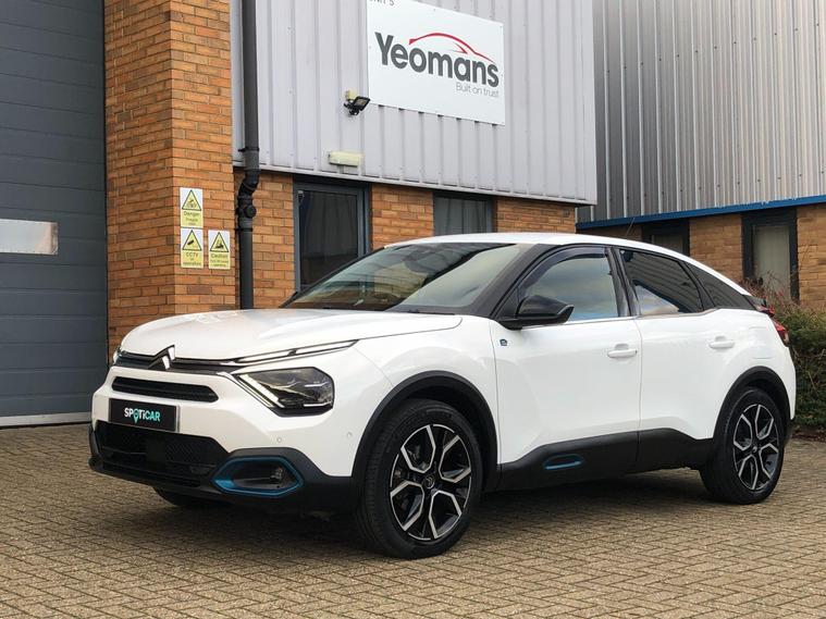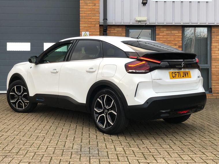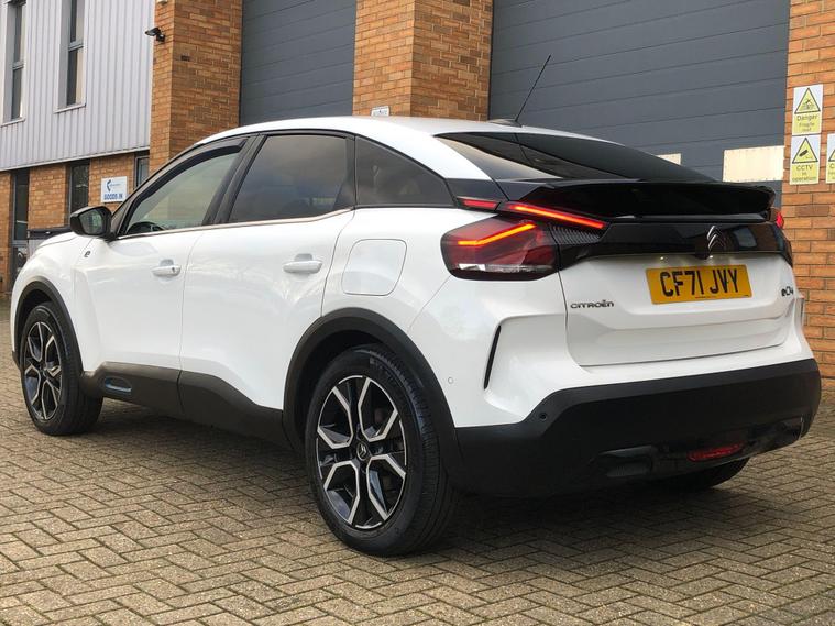 This 2021 Citroen e C4 Shine Plus is a superb example, having had only one owner since new. As a fully electric vehicle, it boasts a 50 kWh battery offering a maximum range of 217 miles when new. Charging is convenient, with a full charge at home on a 7kW charger taking approximately 7 hours and 30 minutes, while rapid public charging can take you from empty to 80% in just 30 minutes.Inside, the Shine Plus trim level enhances your driving experience with a 10 inch high resolution touchscreen that seamlessly integrates Android Auto and Apple CarPlay, alongside Bluetooth connectivity. Stay connected and entertained effortlessly. For added comfort, enjoy electrically heated front seats and the convenience of wireless smartphone charging. The advanced Head Up Display keeps essential information in your line of sight, and the Top Rear Vision reversing camera aids parking. Furthermore, this model offers generous boot space, making it a practical choice for everyday life and longer journeys, setting it apart from many other vehicles in its class..