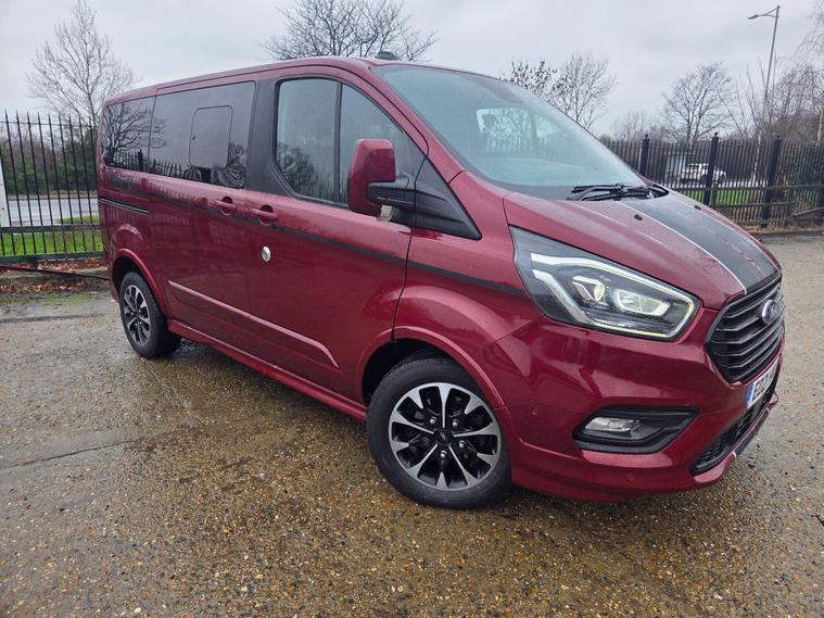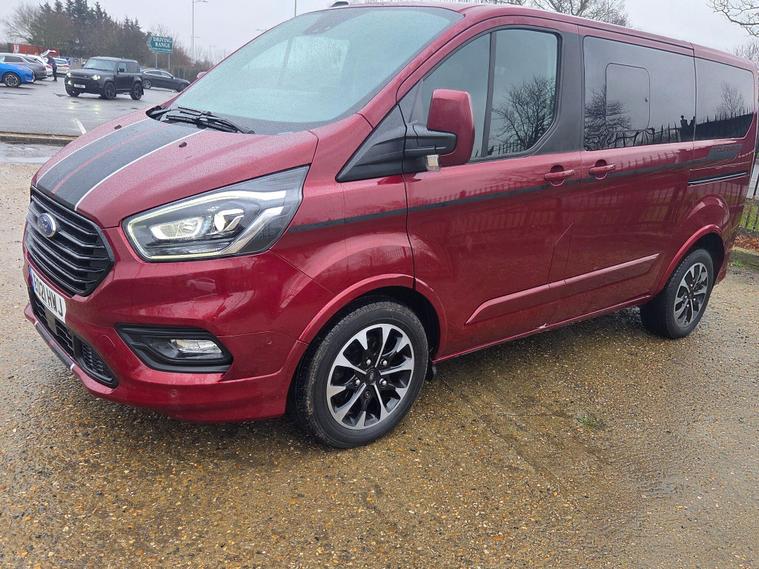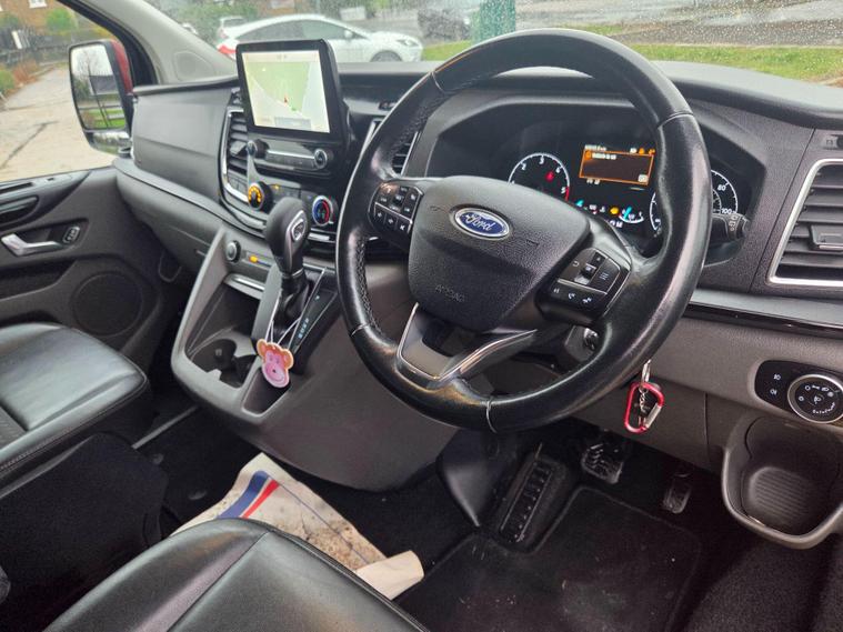 8 seater - 8k spent recently at ford new engine and fuel dpf system - Discover this 2021 Ford Tourneo Custom, a 2.0 320 EcoBlue Sport Auto L1 Euro 6 (s/s) 5dr, presented in the desirable Sport trim. This versatile vehicle is powered by a robust 2.0 litre diesel engine, delivering an impressive 182 bhp. It comes equipped with a suite of advanced features designed to enhance your driving experience, including Lane Keeping Alert with automatic headlights, a rear view camera with trailer hitch assist for effortless parking and towing, and ICE Pack 25 which incorporates adaptive cruise control. For your comfort, it boasts front and rear compartment manual air conditioning, and the door mirrors feature blind spot eliminators and integrated side indicators for added safety.This Tourneo Custom is designed for efficiency and performance, achieving a notable fuel economy of 39 mpg. These highlights demonstrate how this vehicle offers a superior driving experience compared to others in its class. The Euro 6 emission standard ensures it meets current environmental regulations, making it a responsible choice. The combination of its powerful engine, advanced safety and convenience features, and excellent fuel economy makes this Ford Tourneo Custom a compelling option for those seeking a capable and well equipped vehicle..