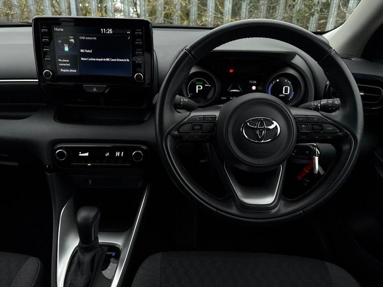 This 2022 Toyota Yaris VVT-h Design is a remarkable find, boasting exceptionally low mileage for its age at just 7893 miles. As a Toyota manufacturer approved vehicle, it comes with the reassurance of a 12 month warranty, offering peace of mind for its next owner. This Euro 6 compliant model is equipped with a responsive 1.5L petrol hybrid engine, delivering an impressive fuel economy of 69 mpg. Notable features include automatic LED headlights, smartphone integration with Apple CarPlay and Android Auto, automatic air conditioning for a comfortable cabin environment, and Bluetooth connectivity for seamless device pairing.The Yaris VVT-h Design stands out with its excellent fuel efficiency, achieving 69 mpg, which is significantly better than many other vehicles in its class. Furthermore, its low CO2 emissions contribute to a more environmentally friendly drive. These highlights demonstrate the Yaris's superior performance and cost effectiveness, making it a wise choice for those seeking an economical and well equipped compact car..