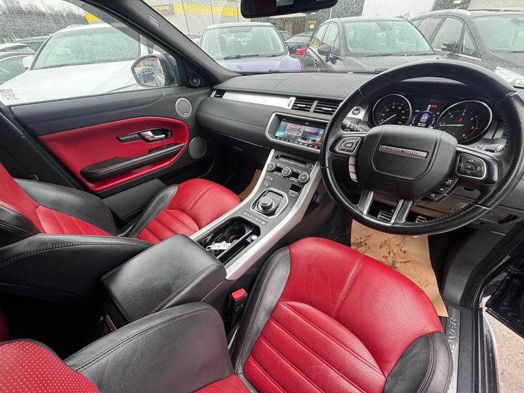 This 2017 Land Rover Range Rover Evoque TD4 HSE Dynamic offers an impressive 55 miles per gallon, making it a highly efficient choice. This four wheel drive model is equipped with a 2.0 litre diesel engine and meets Euro 6 emissions standards. Inside, you'll find 12 way electric memory seats, a Bluetooth system for telephone connectivity and audio streaming, and front and rear parking aids for easier manoeuvring. The HSE Dynamic trim also features xenon headlights with LED signature lights and automatic climate control with air filtration.The Evoque TD4 HSE Dynamic boasts low CO2 emissions and a generous boot space, providing practicality for everyday use and longer journeys. Its acceleration from 0 to 60 miles per hour in just 8.5 seconds demonstrates its capable performance. These highlights indicate that this Range Rover Evoque offers a superior driving experience and greater efficiency compared to many other vehicles in its class..