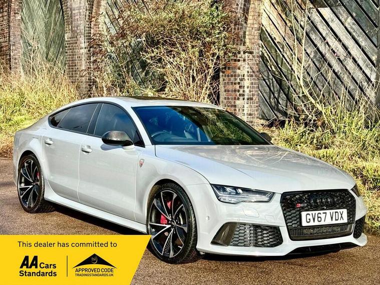 With a full service history and MOT valid until September 2026, this 2017 Audi RS7 TFSI V8 Performance offers excellent provenance. This striking model features a powerful 4.0L petrol engine paired with a four wheel drive drivetrain, meeting Euro 6 emissions standards. Notable features include Audi Parking System Plus with front and rear sensors, a Bluetooth interface for seamless connectivity, and an electric slide and tilt sunroof. You will also benefit from advanced Audi Matrix LED headlights and a Head Up Display, all contributing to a refined driving experience.The RS7 Performance variant is designed for exhilarating driving, boasting an impressive 0-60mph acceleration time of just 3.6 seconds, setting it apart from many other vehicles. This performance is complemented by a large boot space, offering practicality alongside its dynamic capabilities. This vehicle comes with a 6 month Nationwide Premium parts & labour warranty and has a clear vehicle history check, with its last service completed on 2025-10-29 at 87272 miles.SEE THE VIDEO IN THE ADVERT or use this link. https://youtu.be/06xCYgROhBQ?si=tTMmr8PGKoHNKvtK0% Deposit when financing through us.DELIVERY AVAILABLE. The Car Comes With A 6 Month Premium Nationwide Parts And Labour Warranty Finance Available From 10.9 % Apr All Inspections Welcome AA/RAC Px Welcome Viewing By Appointment Only Please Call John On 01992692105 Or 01992692105.