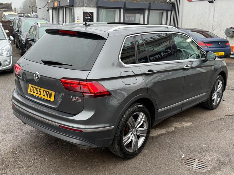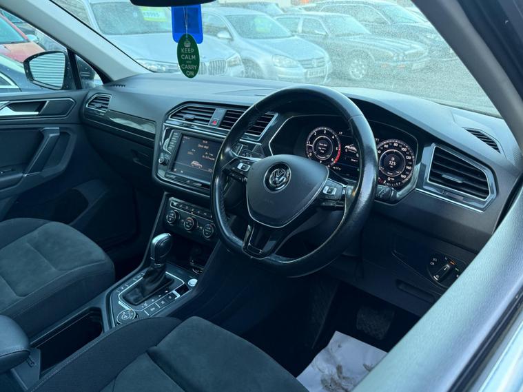 This 2017 Volkswagen Tiguan TDI SEL is a superb example, having had only two owners from new. It features a powerful 2.0 litre diesel engine and a four wheel drive system, making it a capable and robust choice. As a Euro 6 compliant vehicle, it meets modern emissions standards. Convenience is key with this SEL trim, offering keyless entry and an electric tailgate for effortless access. Maneuvering is made simple thanks to the Park Assist system, which includes front and rear sensors along with a rear view camera.This Tiguan also boasts impressive performance, accelerating from 0 to 62 miles per hour in just 7.9 seconds, demonstrating its dynamic capabilities. The large boot space provides ample room for luggage or shopping, a significant advantage over many other vehicles in its class. Furthermore, its low insurance group rating means that running costs are kept down, offering excellent value. With a towing weight of 2500 kg, this Volkswagen Tiguan is a versatile and practical SUV..
