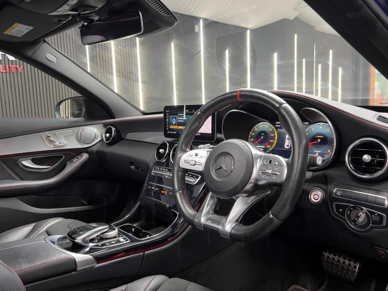 This 2019 Mercedes Benz C Class C43 V6 AMG (Premium Plus) boasts a clear vehicle history, offering peace of mind alongside its impressive performance. Powered by a potent 3.0L petrol engine and featuring four wheel drive, this Euro 6 compliant model delivers exhilarating acceleration, reaching 0-62mph in just 4.7 seconds. The AMG trim ensures a sporty aesthetic and driving experience, complemented by the Premium Plus Package which includes a panoramic sunroof, LED headlights, and keyless entry. Inside, you'll find heated front seats for comfort, THERMATIC automatic climate control for personalised cabin temperature, and a branded sound system for an enhanced audio experience.The convenience features on this C43 AMG are designed to make every journey smoother. A reversing camera, along with 360 degree parking assistance, provides excellent visibility, while smartphone integration via Android Auto or Apple CarPlay keeps you connected. Wireless phone charging adds another layer of practicality. This particular model also benefits from a low insurance group, indicating it is more economical to own than many comparable vehicles. The combination of its powerful engine, advanced technology, and thoughtful features makes this Mercedes Benz C Class a compelling choice..