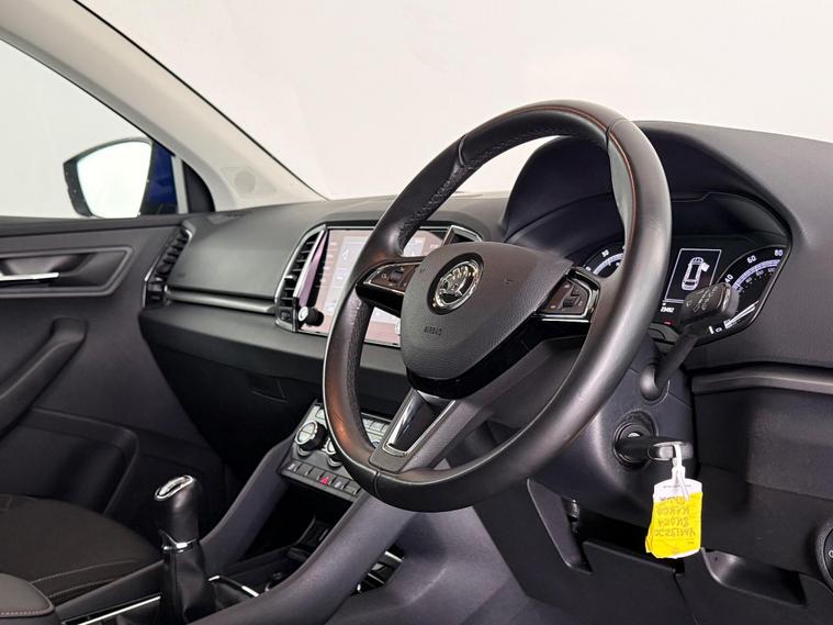 Our Skoda Karoq is finished in Blue. With a great specification, our Karoq includes features such as 17 Inch Alloy Wheels, Electric and Heated Mirrors, Electric Folding Mirrors, Front and Rear Electric Windows, Air Conditioning, Bluetooth, DAB Radio, Multi-Function Steering Wheel, Parking Sensors, USB, Black Cloth Trim, Cup Holders, Folding Rear Seats, Heated Seats, ISOFIX, Remote Central Locking. All Car Planet stock is carefully selected, so you can buy with confidence. Every vehicle undergoes a thorough 150+ point inspection at our dedicated preparation hub by qualified specialists. Every car comes with 12 months of free AA breakdown cover, with the option to add an RAC warranty for up to 60 months of extended protection. You can reserve any car online with a fully refundable £99 reservation at dealer's website We also offer nationwide delivery from just £199, with your new car arriving in as little as 48 hours. We also welcome you to visit one of our retail sites in Barnet or Watford, where our friendly team will guide you through the process and help you find the perfect car. If you're unable to visit in person, same-day video viewings are also available. We offer a range of flexible finance options from our panel of trusted lenders, and we welcome part-exchanges. Simply select, secure, and drive..