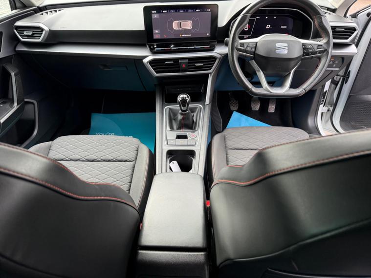 This 2020 SEAT Leon TSI EVO FR boasts a full service history, with its last service completed at 73, 609 miles, offering excellent provenance for this Euro 6 compliant 1.5 litre petrol model. The FR trim level ensures a sporty feel, complemented by striking LED headlights featuring dynamic turn signals and automatic high beam assist. You'll also appreciate the convenience of separate daytime running lights with automatic headlight control and a handy coming home feature. Inside, the Media System Plus with navigation and Bluetooth connectivity keeps you informed and entertained, while the three-zone climate control allows everyone to set their preferred temperature.Experience seamless connectivity with Full Link Smartphone Integration, offering wireless Apple CarPlay and wired Google Android Auto, alongside Mirror Link. This Leon is designed for practicality, featuring a large boot space perfect for all your needs. Its performance is equally impressive, with an acceleration of 0-62mph in just 9.4 seconds, demonstrating its responsive nature. These features collectively highlight how this SEAT Leon offers a superior driving experience compared to other vehicles in its class..