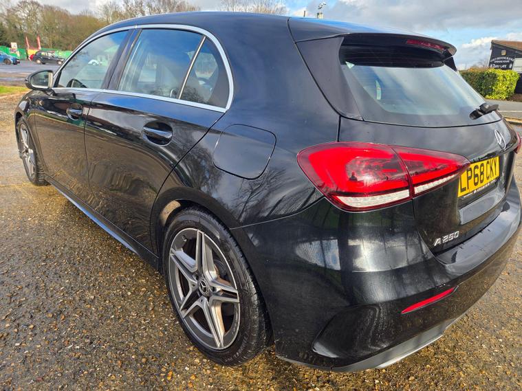 This 2019 Mercedes Benz A Class A250 AMG Line is a prime example of sophisticated engineering and dynamic performance. Powered by a potent 2.0 litre petrol engine, this Euro 6 compliant model offers an exhilarating 0-62mph acceleration in just 6.2 seconds, showcasing its impressive responsiveness. The AMG Line trim enhances its sporty appeal, while the inclusion of LED High Performance Headlamps with integrated LED Daytime Running Lights ensures excellent visibility. Further enhancing convenience and safety are the automatic headlamp activation and a 180 degree reversing camera with parking guidelines, making manoeuvring effortless.Inside, occupants are treated to the THERMOTRONIC luxury automatic climate control, offering a dual zone system with a clear display for personalised comfort. Connectivity is also a strong point, with a dual Bluetooth interface and two USB Type C ports readily available. Beyond its advanced technology, this A Class boasts a surprisingly large boot space, providing ample room for luggage or shopping. These features collectively demonstrate how this Mercedes Benz A Class A250 AMG Line stands out, offering a superior driving experience compared to other vehicles in its class..