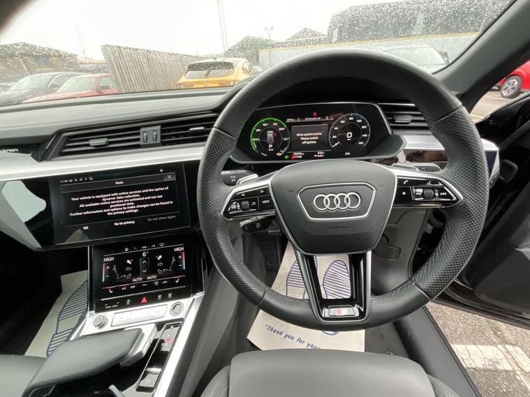 This 2022 Audi e-tron S line boasts exceptionally low mileage for its age, having covered just 16, 473 miles. As an electric vehicle with Four Wheel Drive, this S line variant offers a sophisticated driving experience. Its MOT is valid until January 2027, providing peace of mind. The e-tron features a 71 kWh battery, capable of delivering a maximum range of 203 miles when new. Charging at home using a 7kW charger takes approximately 9 hours and 10 minutes for a full charge, while rapid public charging can replenish the battery from empty to 80% in as little as 34 minutes.Experience impressive performance with the Audi e-tron S line, accelerating from 0 to 62mph in a swift 6.8 seconds, demonstrating its dynamic capabilities. This acceleration is a key indicator of its superior performance compared to many other vehicles in its class. Furthermore, the e-tron provides ample practicality with its large boot space, making it ideal for everyday use and longer journeys alike..