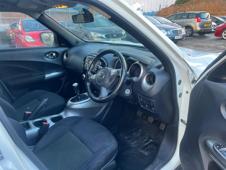 NISSAN JUKE 1.5 DCI 8V ACENTA IN A WHITE EXTERIOR COLOUR WITH BLACK CLOTH INTERIOR... £20 ANNUAL ROAD TAX... COMES WITH A LONG MOT... SERVICE HISTORY... FEATURING DRIVE MODES: NORMAL, SPORTS, ECO WITH DRIVE INFO... MULTIFUNCTION STEERING WHEELS WITH RADIO AND CRUISE CONTROL LIMITER... DAYTIME RUNNING LIGHTS DRL... PRIVACY GLASS... AUTO START/START... FOG LIGHTS... TYRE PRESSURE RESET CONTROLS... CD FM RADIO WITH BLUETOOTH CONNECTIVITY, MENU OPTIONS AND USB/AUX PORT... CLIMATE CONTROL WITH FRONT AND REAR HEATED WINDOWS... ELECTRIC ADJUSTABLE SIDE FOLDING MIRRORS... CENTRAL LOCKING DOOR CONTROLS... ALL ROUND ELECTRIC WINDOWS... CUP HOLDERS... ALLOY WHEEL WITH DECENT TREAD ALL ROUND... WARRANTY INCLUDED... ALL PART EXCHANGES ARE WELCOME... OPTIONAL NATIONWIDE DELIVERY EXTRA... BOOK-INS AND VIDEO VIEWINGS ARE AVAILABLE... TEST DRIVES ARE WELCOME... FOR MORE INFORMATION CALL US TODAY ON 01616232309..