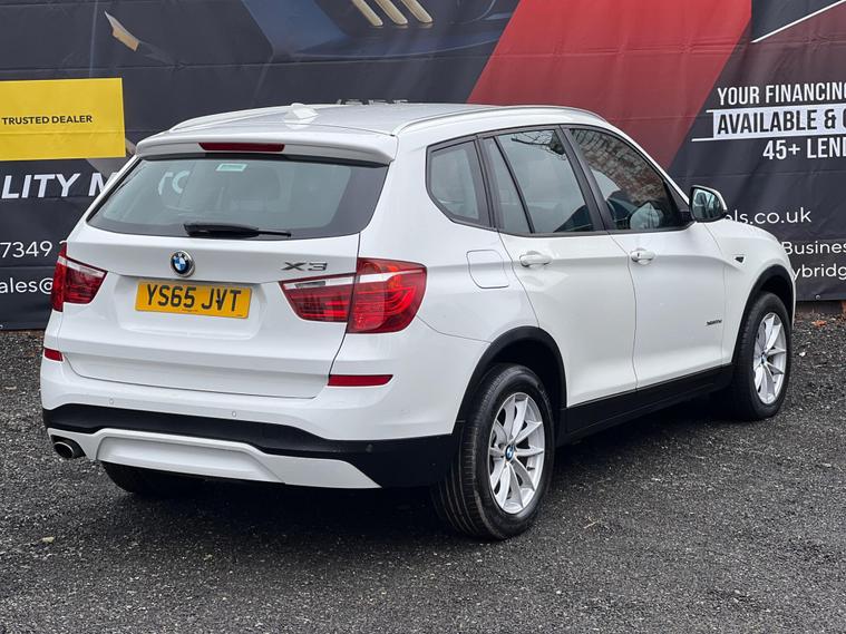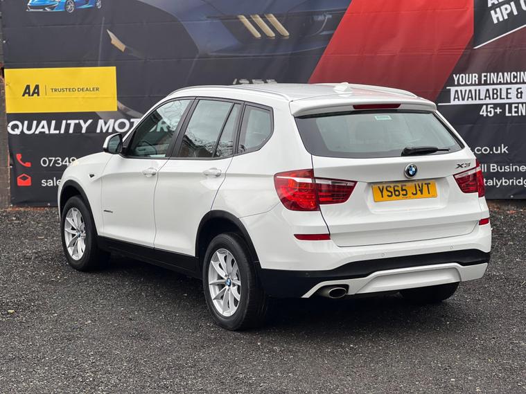 Striking in white, this 2015 (65) BMW X3 20d SE Auto xDrive (Euro 6, s/s) offers strong performance with confident all-wheel drive. 1 owner, 178, 000 miles, smooth automatic diesel and ULEZ compliant — a spacious, premium SUV built for comfortable long-distance driving.Driver assist / safetyStop/Start (s/s)xDrive all-wheel driveCruise control with brake functionDynamic Stability Control (DSC)Dynamic Traction Control (DTC)ABS (Anti-lock Braking System)Brake AssistHill Descent Control (HDC)Tyre Pressure MonitoringISOFIX child seat pointsFront, side and curtain airbagsInterior / comfort / infotainmentDual-zone automatic climate controliDrive infotainment systemBluetooth hands-free with audio streamingDAB digital radioUSB/AUX connectivityMulti-function steering wheelTrip computerElectric windowsSplit/folding rear seatsRemote central lockingDue to high demand, early booking of viewings is recommended. Arrange yours via our website https:/ dealer's website or by calling +44 (0)7349390791Our friendly team will look after you before, during and after the sales. We will help you with taxing the vehicle, completing official forms, and we will make sure that you, your family and loved ones are safe on the road. We also offer a wide range of warranties and finance to meet your needs. WHO WE AREWe are a car dealership with 16 years of experience, based in Clarence Street, Stalybridge, SK15 1QF. We are 100% sure that we can find you the right vehicle as we offer over 150 cars for sale at any time. OUR QUALITY PROMISE- Every car comes with our FREE 3 Months warranty- We offer a fresh MOT for all vehicles due for one within the next 3 months. - All our vehicles are HPI Clear and undergo a 39-Point check, conducted by professional inspectors. - Every vehicle is valeted and sanitised to a high standard. - We are able to offer delivery nationwide at competitive prices, don't hesitate to contact us for a quote.FINANCE, PART EXCHANGE OR A STRAIGHT PURCHASE IS AVAILABLE. QPX Wheels Team.https:/ dealer's website