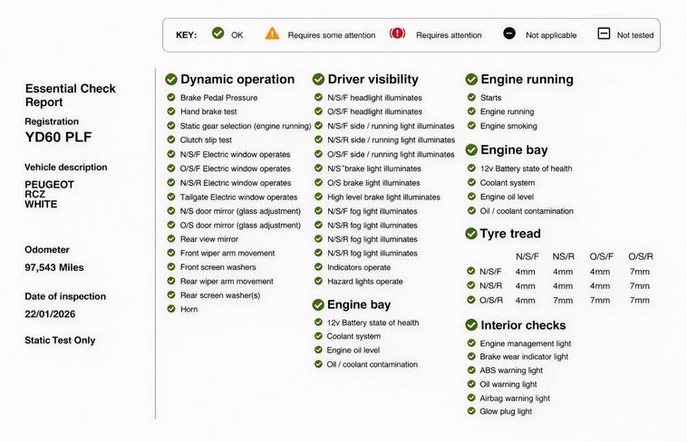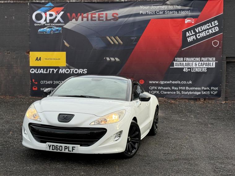 Stylish and sporty 2010 (60) Peugeot RCZ 1.6 THP Sport (Euro 5) 2dr finished in white. Petrol manual 97000 miles, ULEZ compliant — a great-looking coupé with strong road presence and everyday usability.ABS (Anti-lock Braking System)ESP / stability controlTraction controlFront airbagsFront side airbagsCurtain airbagsISOFIX child seat pointsInterior / cabinAir conditioningElectric windowsRemote central lockingTrip computer / multi-function displayRadio / CD audio systemAUX inputLeather-trimmed steering wheelSplit/folding rear backrests (2+2 seating layout)Due to high demand, early booking of viewings is recommended. Arrange yours via our website https:/ dealer's website or by calling +44 (0)7349390791Our friendly team will look after you before, during and after the sales. We will help you with taxing the vehicle, completing official forms, and we will make sure that you, your family and loved ones are safe on the road. We also offer a wide range of warranties and finance to meet your needs. WHO WE AREWe are a car dealership with 16 years of experience, based in Clarence Street, Stalybridge, SK15 1QF. We are 100% sure that we can find you the right vehicle as we offer over 150 cars for sale at any time. OUR QUALITY PROMISE- Every car comes with our FREE 3 Months warranty- We offer a fresh MOT for all vehicles due for one within the next 3 months. - All our vehicles are HPI Clear and undergo a 39-Point check, conducted by professional inspectors. - Every vehicle is valeted and sanitised to a high standard. - We are able to offer delivery nationwide at competitive prices, don't hesitate to contact us for a quote.FINANCE, PART EXCHANGE OR A STRAIGHT PURCHASE IS AVAILABLE. QPX Wheels Team.https:/ dealer's website