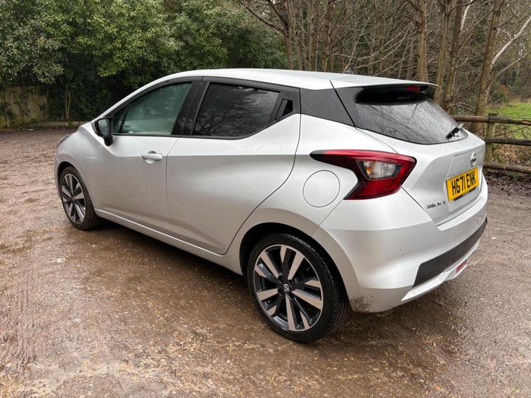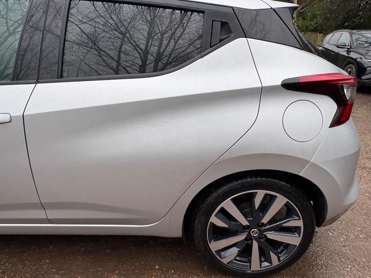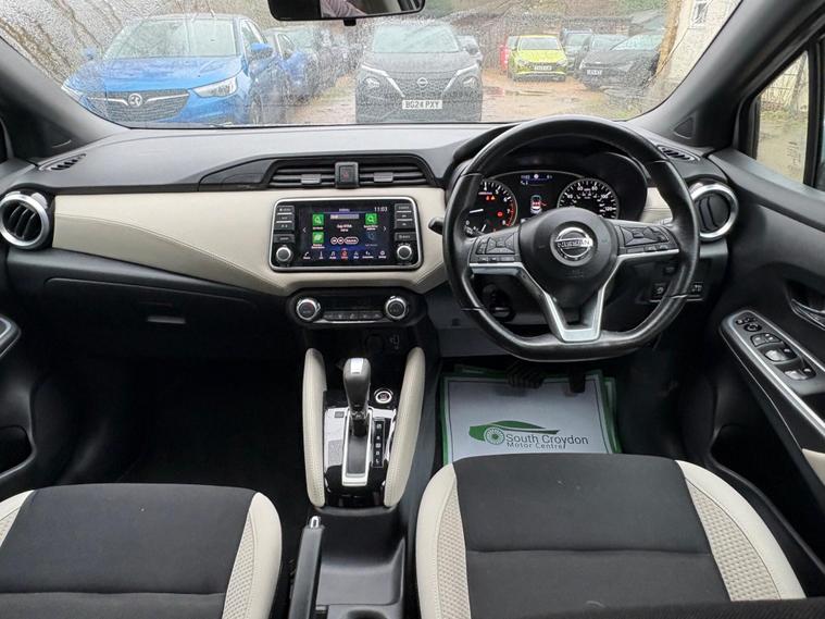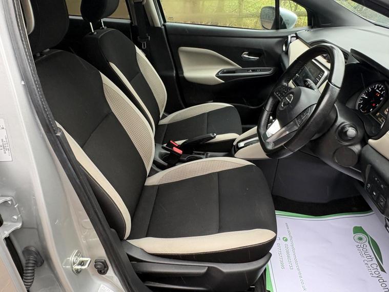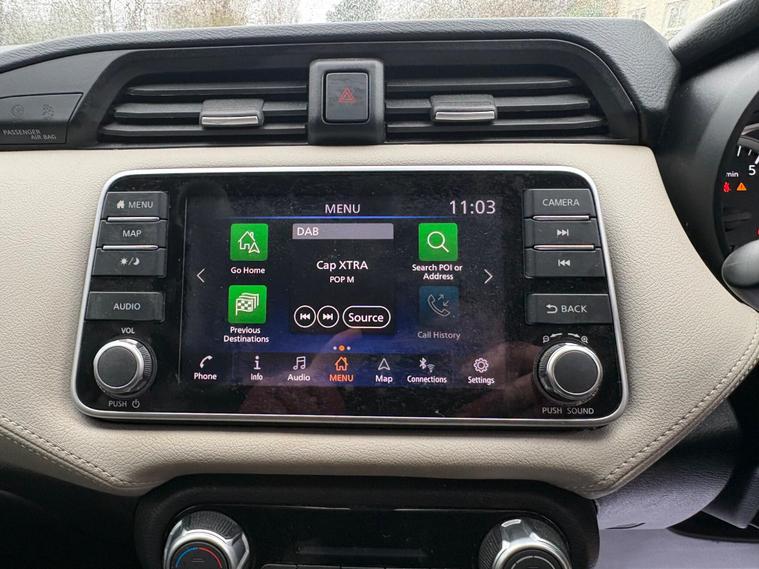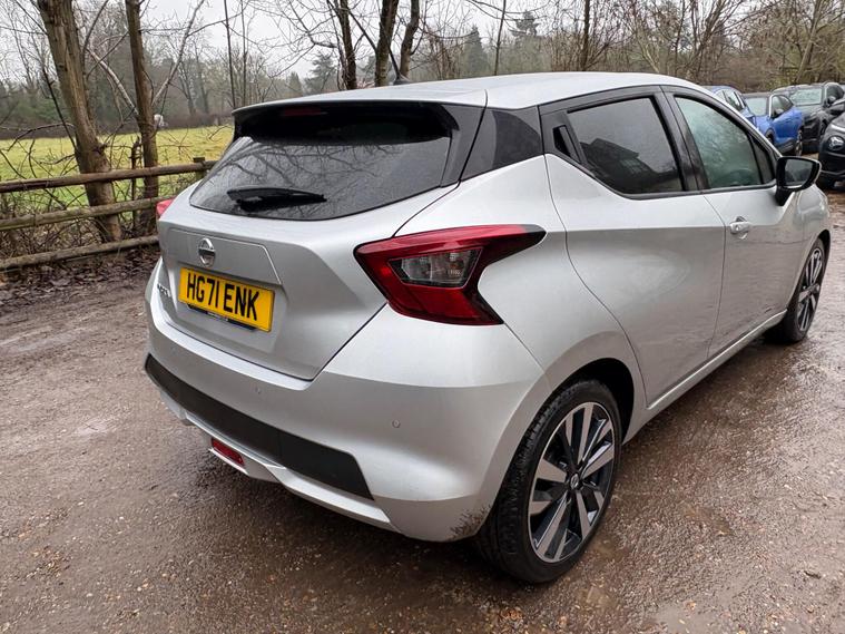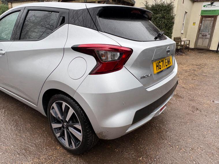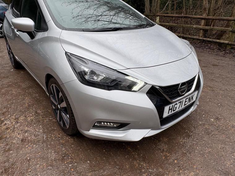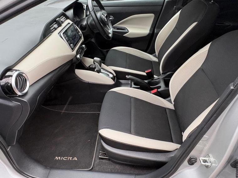 Discover this 2021 Nissan Micra IG-T Tekna, boasting exceptionally low mileage for its year at just 17, 288 miles. This Euro 6 compliant 1.0 litre petrol model offers a stylish and practical driving experience. Inside, you'll appreciate the Energy Orange Interior Personalisation, creating a vibrant cabin atmosphere. For effortless manoeuvring, it features a 360 Degree Around View Monitor with a 360 Degree Camera and front parking sensors, making parking a breeze.Enhancing your journeys further, this Micra is equipped with the BOSE Personal Audio Pack, delivering a premium branded sound system for your enjoyment. Stay connected on the go with its integrated Bluetooth system. This particular Tekna trim level stands out with its low insurance group, indicating it is more economical to insure than many comparable vehicles. This Nissan Micra represents a well maintained and feature rich option for your next car..