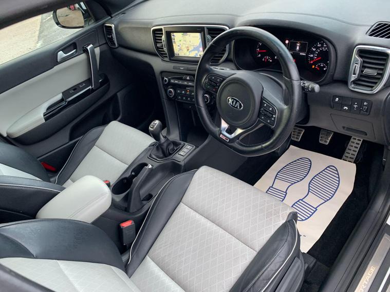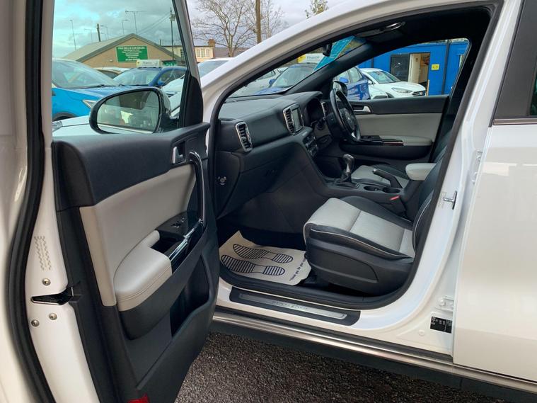 Boasting an impressive MOT valid until January 2027, this 2016 Kia Sportage T-GDi GT-Line offers excellent peace of mind. This Four Wheel Drive model is powered by an efficient 1.6 litre petrol engine and meets Euro 6 emissions standards. It has been well looked after by its two previous owners and comes with a 3 month warranty for added reassurance. Inside, you'll find a host of desirable features designed for comfort and convenience, including heated front and outer rear seats, dual automatic air conditioning with an ioniser, and a smart key entry system for effortless access.This Sportage GT-Line is designed to impress, with a brisk 0-60mph acceleration time of just 9.2 seconds, demonstrating its responsive performance. Its low insurance group rating means it is more economical to run compared to many similar vehicles. Furthermore, the generous boot space provides ample room for shopping, luggage, or sports equipment, making it a practical choice for families and individuals alike. Rear parking sensors are also included, aiding you when manoeuvring into tighter spaces..