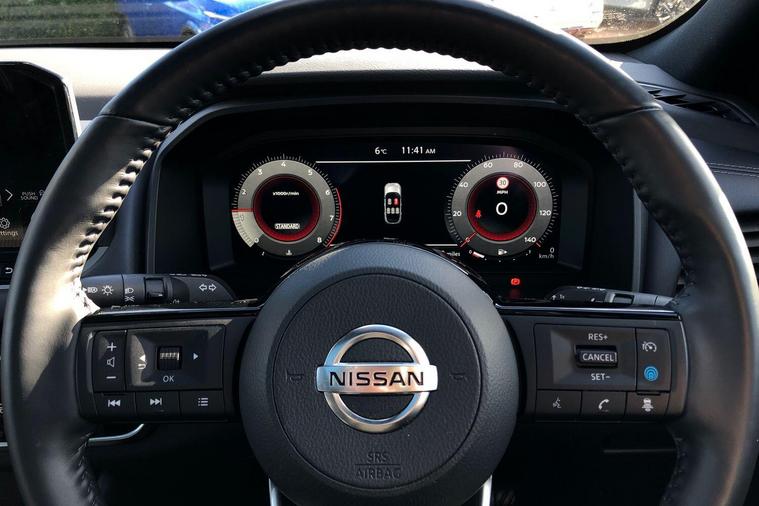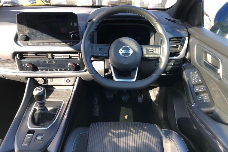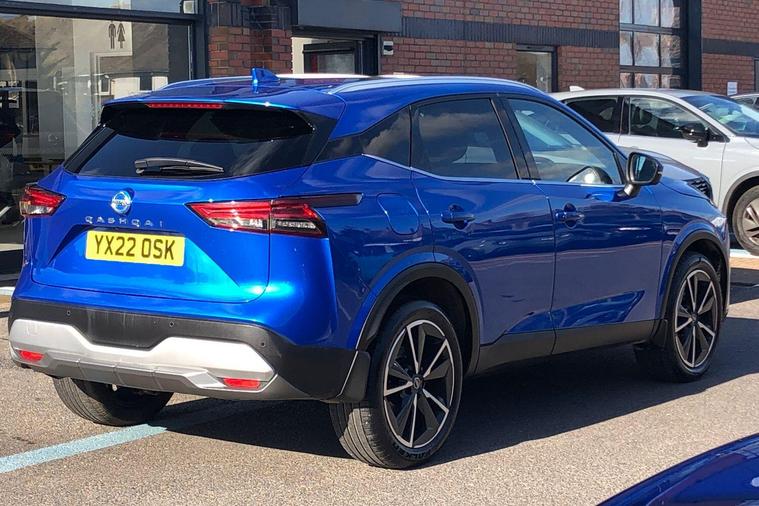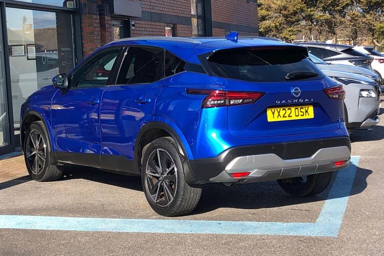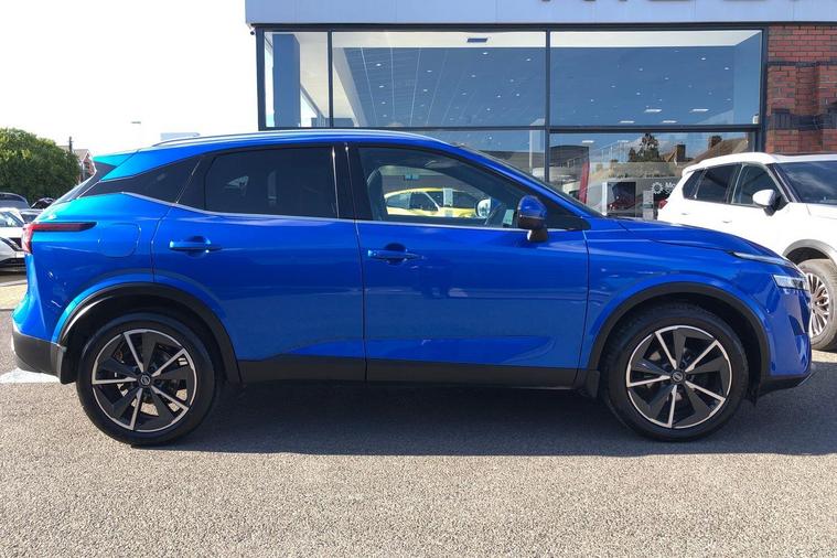 This 2022 Nissan Qashqai DIG-T Tekna is a Nissan manufacturer approved vehicle, offering you complete peace of mind with 12 months warranty and a full service history. This Euro 6 compliant model features a 1.3L Petrol Hybrid engine, combining efficiency with performance. The Tekna trim level ensures you benefit from a host of advanced technology, including Blind Spot Warning with Intelligent Blind Spot Intervention, a Dusk Sensor for automatic headlights, and an Intelligent Around View Monitor with a 360 degree camera for effortless parking. Front and rear parking sensors further enhance your parking experience.The Qashqai DIG-T Tekna stands out with its generous boot space, providing ample room for all your needs, and its position in a low insurance group, making it an economical choice. These aspects, alongside its comprehensive safety and convenience features, demonstrate how this Qashqai offers a superior driving experience compared to other vehicles in its class..