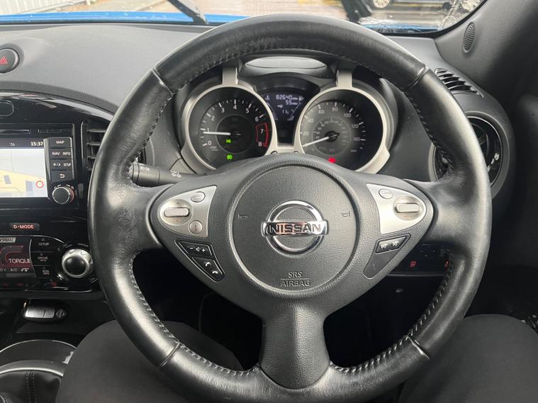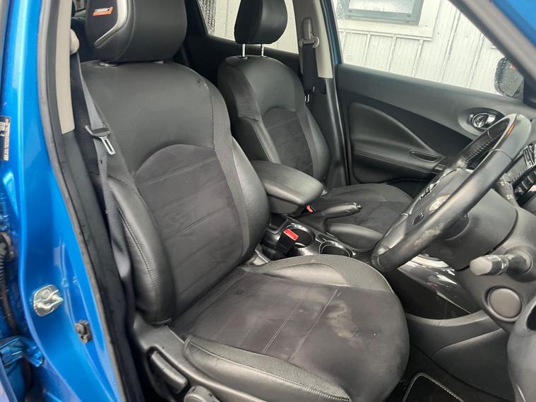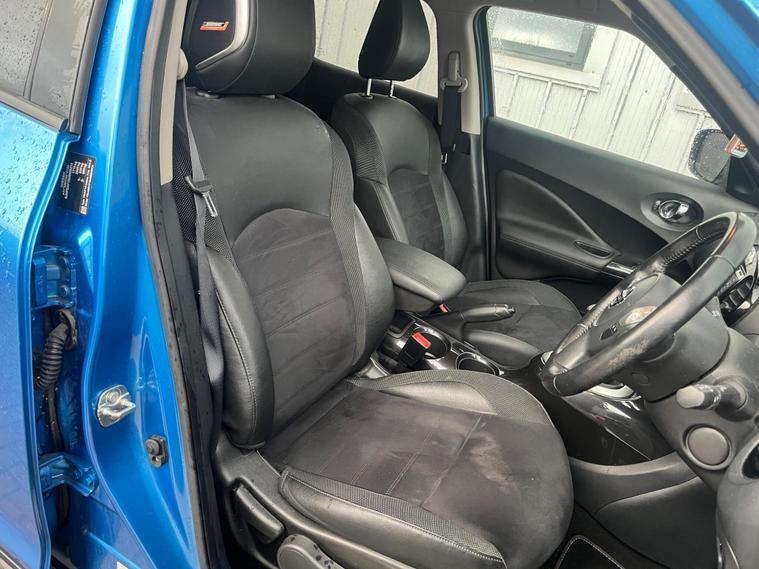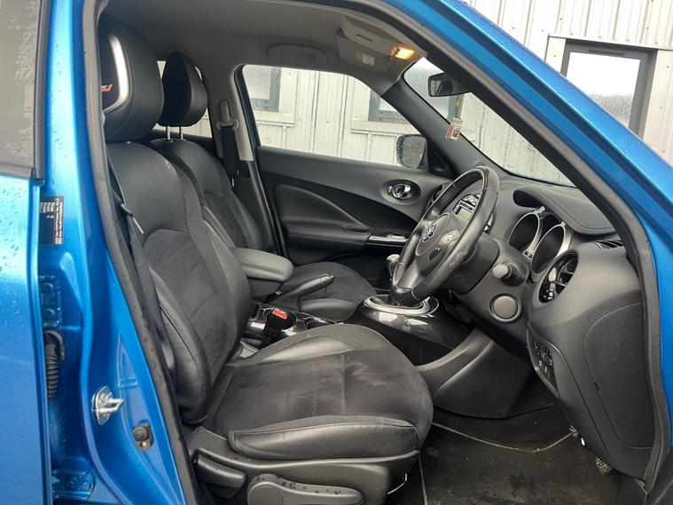 This 2018 Nissan Juke DIG-T Bose Personal Edition boasts a clear vehicle history, offering you peace of mind. This stylish hatchback features a 1.2 litre petrol engine and meets Euro 6 emissions standards. Keyless entry and start are provided by the Intelligent Key system, while automatic headlights with a dusk sensor ensure visibility. Inside, you'll find automatic climate control with a pollen filter for a comfortable cabin, and Bluetooth integration for seamless telephone connectivity. Parking is made easier with a colour reversing camera.The Nissan Juke DIG-T Bose Personal Edition is designed to be economical and efficient. It achieves an impressive fuel economy of 50 miles per gallon, which indicates it is more economical than many similar vehicles. Furthermore, its low CO2 emissions and low insurance group rating suggest that running costs are kept to a minimum, making it a sensible choice for many drivers..