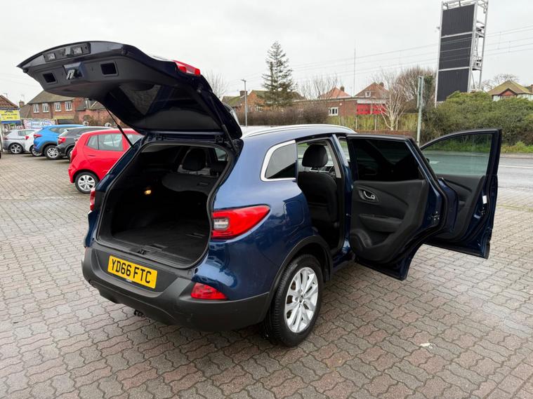ONE FORMER KEEPER, 6 MONTHS WARRANTY, 12 MONTHS MOT, Experian clear, 2 keys, just serviced, all prev MOT’s avail, we are located at 1-9 WALTON ROAD FRINTON ON SEA ESSEX CO13 0AA, PART EXCHANGE WELCOME, FINANCE AVAILABLE, This 2017 Renault Kadjar dCi Dynamique Nav presents an exceptional opportunity with its remarkably low mileage of just 54, 100 miles. This Euro 6 compliant 1.5L diesel model, registered in 2017, comes with a 6 month warranty and a full 12 months MOT provided on purchase, ensuring peace of mind. Its service history is up to date with the last service recorded on 06 February 2026. Inside, you'll find a host of convenient features including Keycard Hands Free for keyless entry, an Arkamys 3D Sound DAB radio with Bluetooth and USB connectivity, and automatic dual zone climate control with automatic headlights. The Dynamique Nav trim also benefits from Android Auto integration, keeping you connected on the go.This Kadjar stands out with its impressive fuel economy, achieving an outstanding 74 miles per gallon, which is significantly better than many other vehicles in its class. Furthermore, its low insurance group and low CO2 emissions highlight its cost effectiveness and environmental consideration, making it a sensible choice for many drivers..