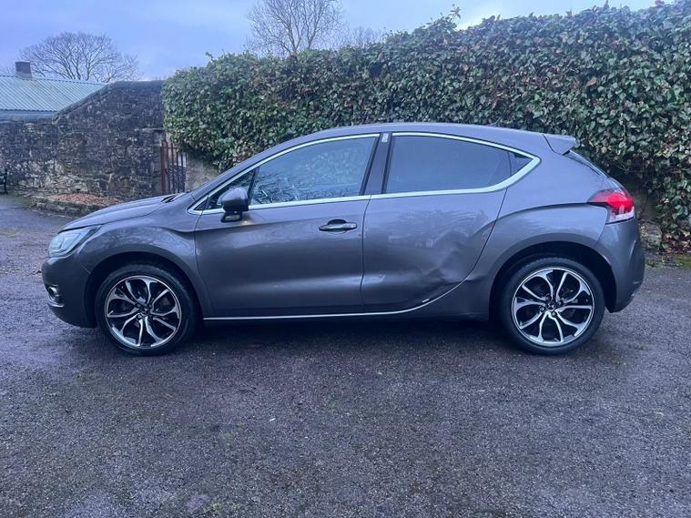 DS AUTOMOBILES DS 4 2.0 BLUEHDI PRESTIGE IN A GREY EXTERIOR COLOUR WITH GREY/BLACK LEATHER INTERIOR... COMES WITH 2 REMOTE KEYS... LONG MOT... £35 ROAD TAX... COMES WITH A FULL SERVICE HISTORY WITH A RECENT SERVICE... FEATURING DAYTIME RUNNING LIGHTS DRL... PRIVACY GLASS... MULTIFUNCTION STEERING WHEEL WITH RADIO AND CRUISE CONTROL LIMITER... REAR PARKING SENSORS... FOG LIGHTS... AUTO LIGHTS AND WIPERS... DS CD TOUCHSCREEN RADIO WITH BUILT IN SATNAV, BLUETOOTH CONNECTIVITY, CAR INFO, RADIO SETTINGS AND USB/AUX PORTS... PUSH BUTTON START... ECO MODE... ELECTRIC HANDBRAKE... CLIMATE CONTROL WITH FRONT AND REAR HEATED WINDOWS... FUEL CAP RELEASE BUTTON... ELECTRIC ADJUSTABLE SIDE FOLDING MIRRORS... FRONT ELECTRIC WINDOWS... CUP HOLDERS... ALLOY WHEELS WITH DECENT TREAD ALL ROUND... WARRANTY INCLUDED... ALL PART EXCHANGES ARE WELCOME... OPTIONAL BOOK-INS AND VIDEO VIEWINGS ARE AVAILABLE... TEST DRIVES ARE WELCOME... FOR MORE INFORMATION CALL US TODAY ON 01616232309..