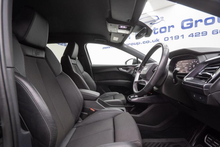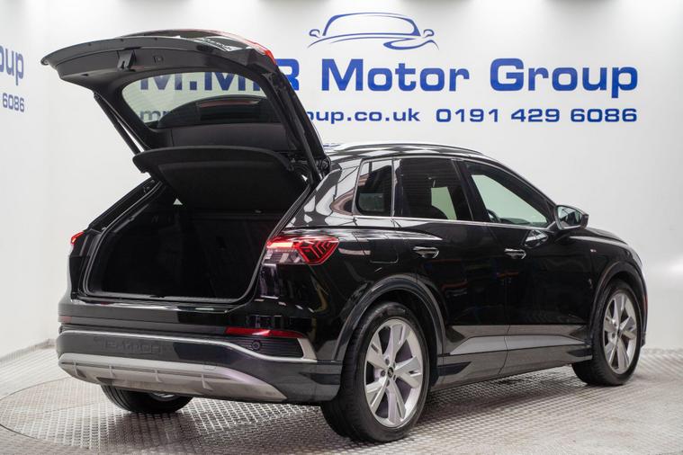 58, 082 miles, Discover this 2021 Audi Q4 e-tron S line, a premium electric vehicle offering an impressive new battery range of 303 miles. This S line variant combines sophisticated styling with advanced electric performance, featuring a substantial 82 kWh battery. Inside, you'll find comfort and convenience with 3-Zone Electronic Climate Control, heated front seats, and comfort auxiliary air conditioning. The exterior is enhanced by striking LED headlights with distinctive LED daytime running lights, while rear parking sensors provide added assistance when manoeuvring.This Audi Q4 e-tron is designed for modern living, boasting a large boot space perfect for all your needs. Its electric powertrain offers a full home charging time of 11 hours 30 minutes using a 7kW charger, and for rapid top-ups, it can reach 80% charge from empty in just 30 minutes at a compatible public charging station. These capabilities, alongside its exceptional 303 mile range, position this Q4 e-tron as a superior choice for those seeking an efficient and luxurious electric driving experience.Please call our experienced sales team on 01914800597 for any additional specification queries, an in depth appraisal/ Video call or maybe we can help fund your new car. All our vehicles are prepared to the highest standards by our expert technicians in our fully equipped preparation centre as we're an AA approved dealer. Every car must go through a strict and thorough inspection, Items that require attention, mechanically or cosmetically are addressed prior to delivery. We offer a wide range of Finance and Warranty packages as well as fantastic trade rates for allow wheel refurbs/colour changes, window tinting and much more. All our vehicles are subject to a £199 service support fee and are therefore supplied with pre delivery service, 12 months MOT, 12 months AA breakdown cover and 6 months Auto Protect warranty that can be extended up to 24 month. All vehicles are HPI clear a full report can be supplied at point of sale. Home Delivery can be arranged throughout the UK. We welcome part exchanges.