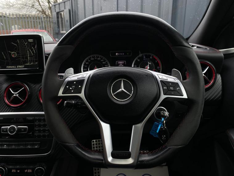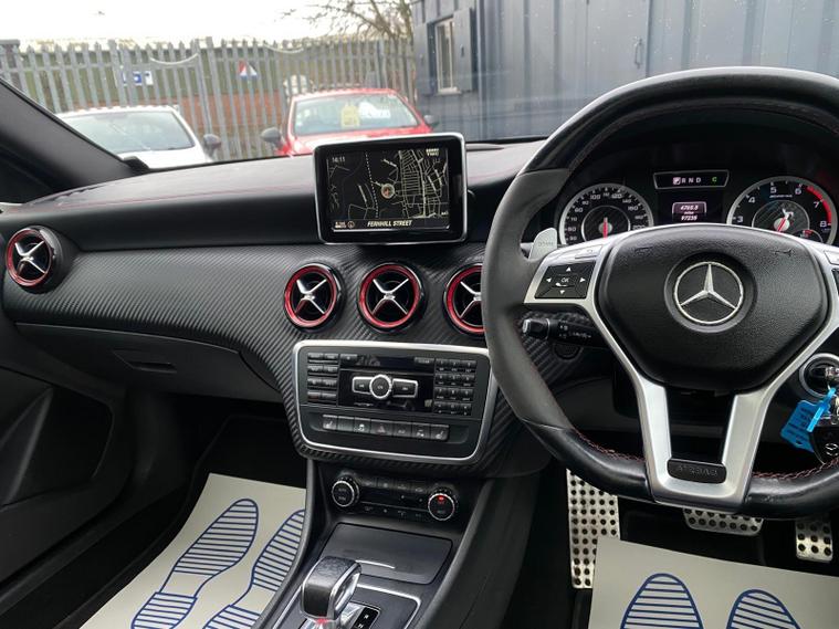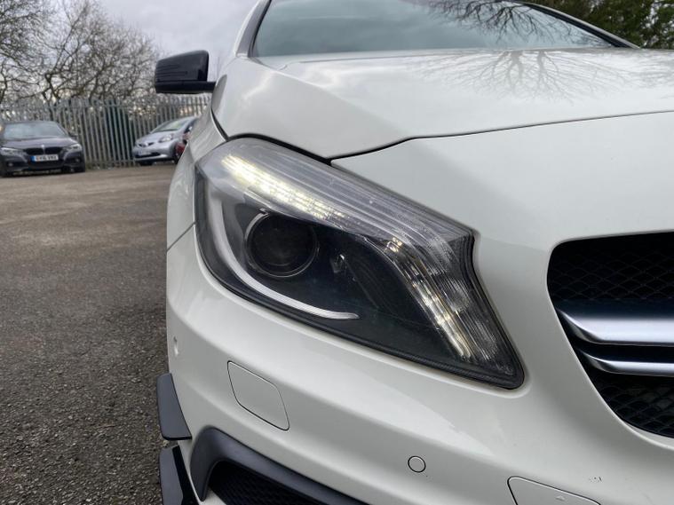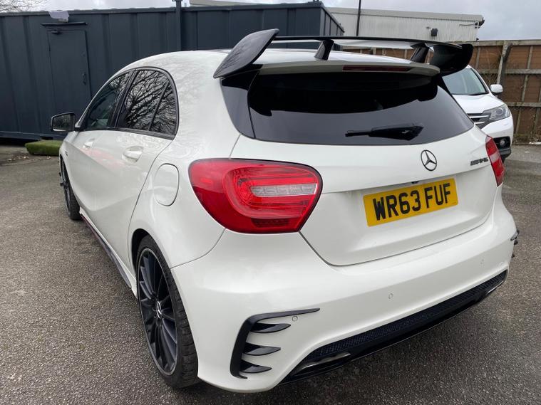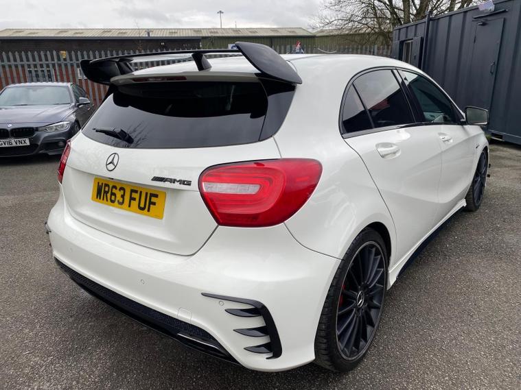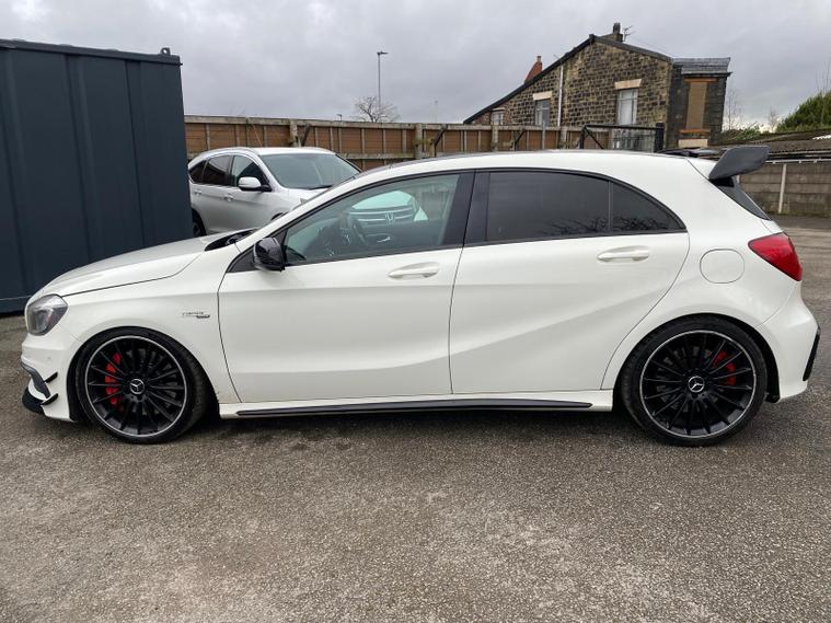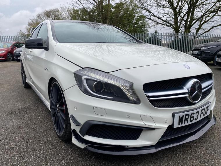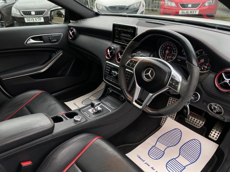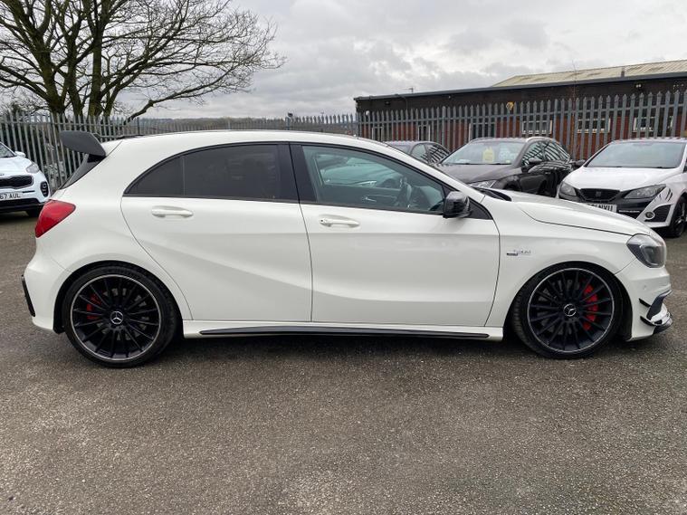 Mega spec tons of receipts This 2013 Mercedes Benz A Class A45 AMG is a remarkable example of performance engineering. As a Euro 6 compliant model, it showcases a potent 2.0L petrol engine paired with a sophisticated four wheel drive system, ensuring exhilarating yet composed handling. The AMG trim level is evident throughout, with distinctive 19in AMG Multi Spoke alloy wheels painted in a striking matt black, and an AMG Aerodynamics package that enhances its sporty silhouette. Further enhancing its premium appeal are the AMG Carbon Fibre exterior mirror housings, adding a touch of bespoke style. Inside, you will find a truly immersive audio experience thanks to the Harman Kardon Logic 7 surround sound system, complete with Dolby Digital 5.1 and DTS, offering a premium branded sound. This model also boasts a generously sized boot, providing ample practicality for everyday use.The performance of this A45 AMG truly sets it apart from other vehicles in its class. Its impressive acceleration is highlighted by a rapid 0-62mph time of just 4.6 seconds, demonstrating its potent capabilities. This exceptional speed, combined with the advanced four wheel drive system and aerodynamic enhancements, offers a driving experience that is both thrilling and refined. The inclusion of the premium Harman Kardon sound system further elevates the cabin environment, making every journey a pleasure..